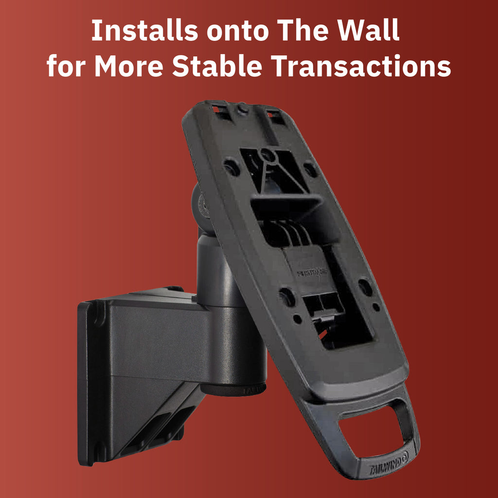 - Enhance customer experience by making your POS terminal more accessible; the wall mount makes the movement of your POS terminal from customer to merchant easier and improves overall transaction; wall mount terminal stand tilts 140° and swivels 180°