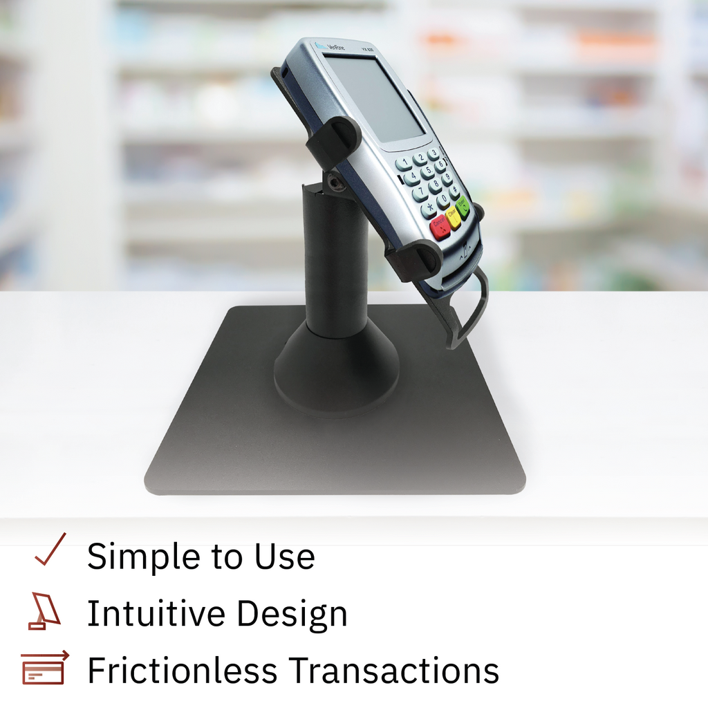 - Stand allows for seamless customer interactions with less danger of harm to equipment; flange cover hides wires and mount keeps terminal secure for minimized chances of damage and theft to POS terminal; durable powder coated finish protects stand
