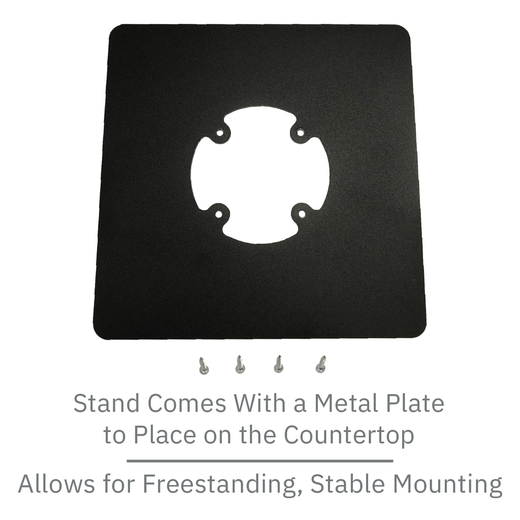 • Includes 8" x 8" square countertop plate which increases flexibility and allows the mount to be freestanding. Simply screw the stand to the plate with enclosed screws.