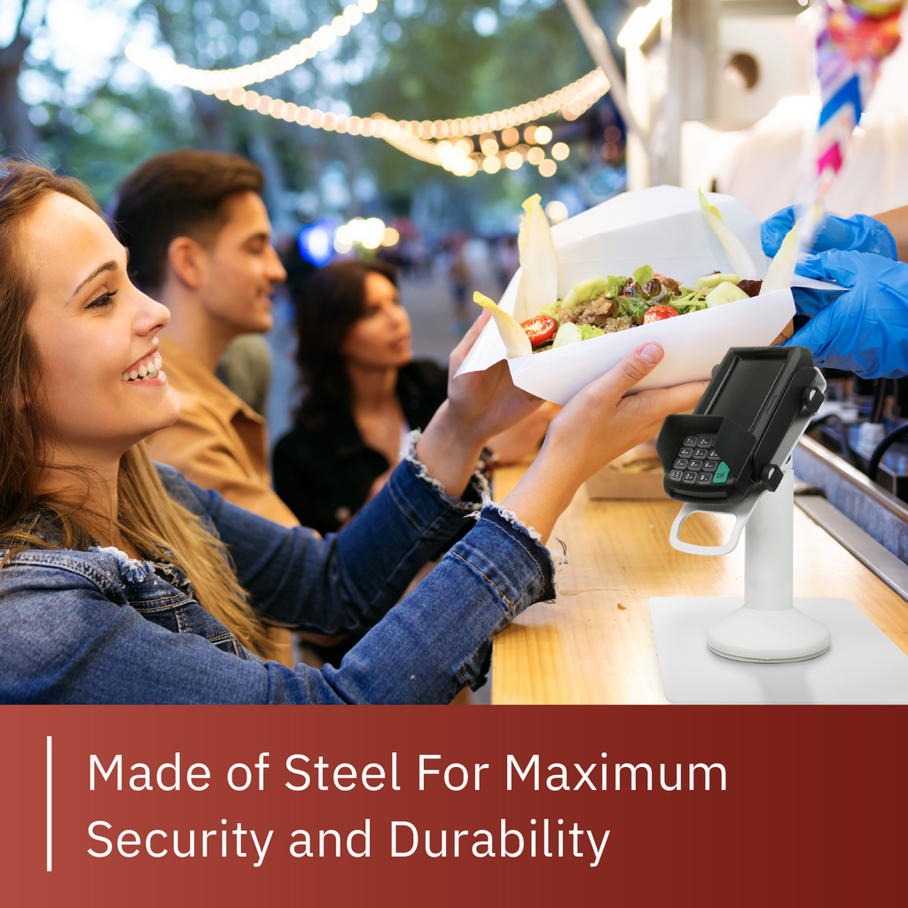 - Essential to enhance customer experience; POS terminal stand is great for customers and merchants; stand can tilt up to 60° and swivel a full 190°, making moving device from customer to merchant easier; improves payment transaction