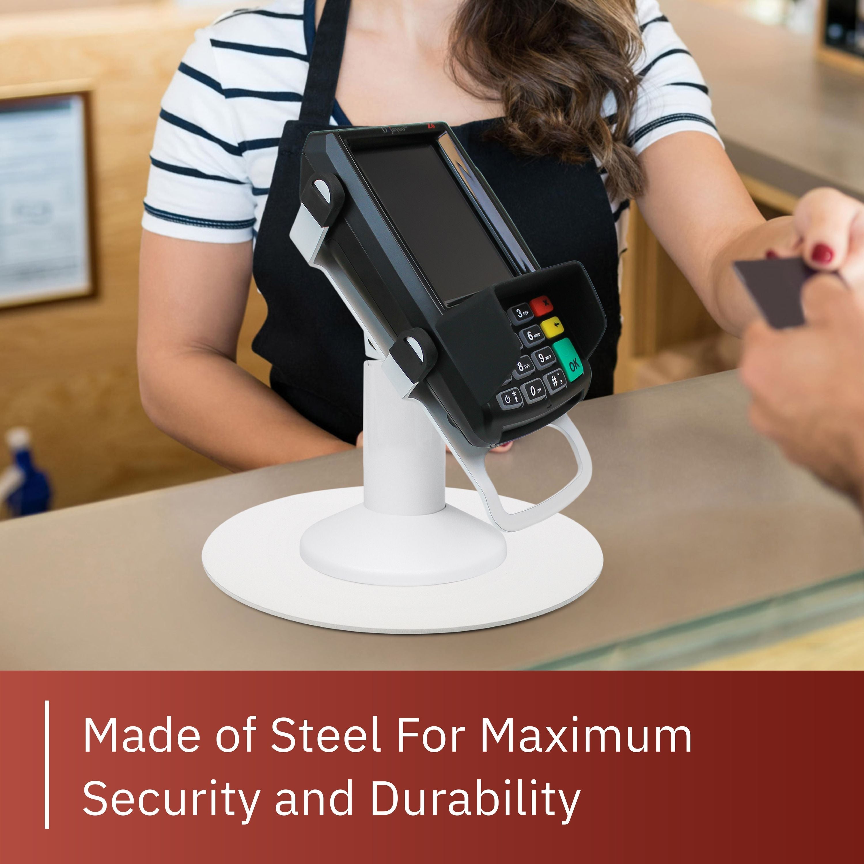 - Essential to enhance customer experience; POS terminal stand is great for customers and merchants; stand can tilt up to 60° and swivel a full 190°, making moving device from customer to merchant easier; improves payment transaction