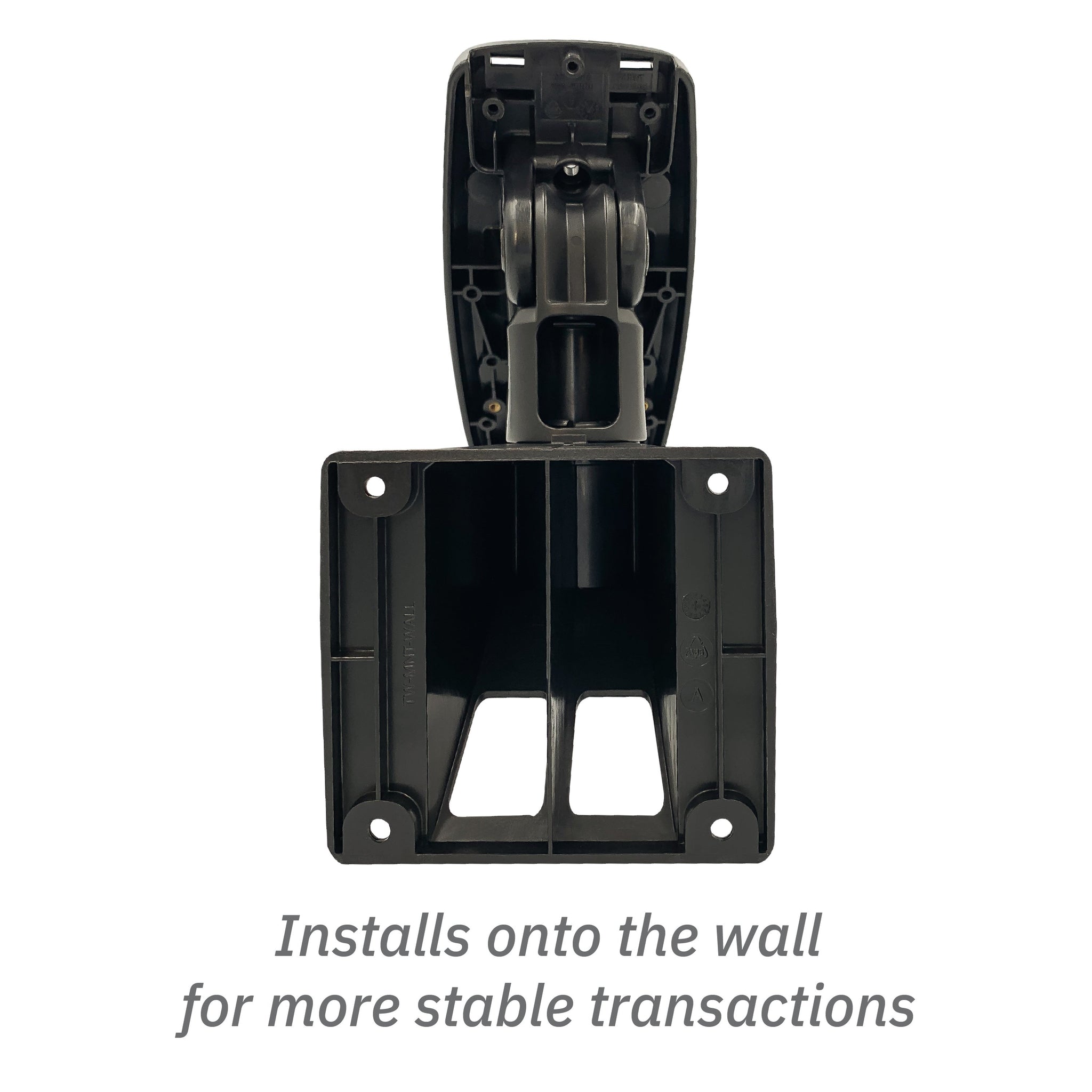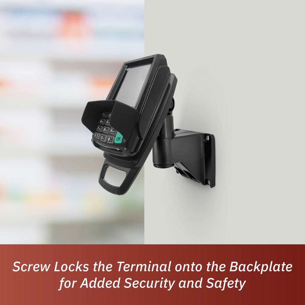 - Enhance customer experience by making your POS terminal more accessible; the wall mount makes the movement of your POS terminal from customer to merchant easier and improves overall transaction; wall mount terminal stand tilts 140° and swivels 180°