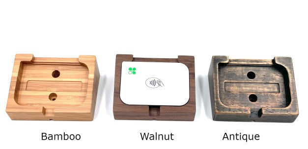 The Custom Made Wooden holder for the Clover Go is in a class of its own. Each stand is carefully crafted from solid hardwoods. Choose black Walnut, distressed Antique, or Moso Bamboo. Each material has its own distinct look and no two stands are exactly alike. Your stand is sure to make an impression on everyone who sees it.