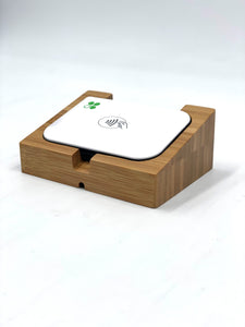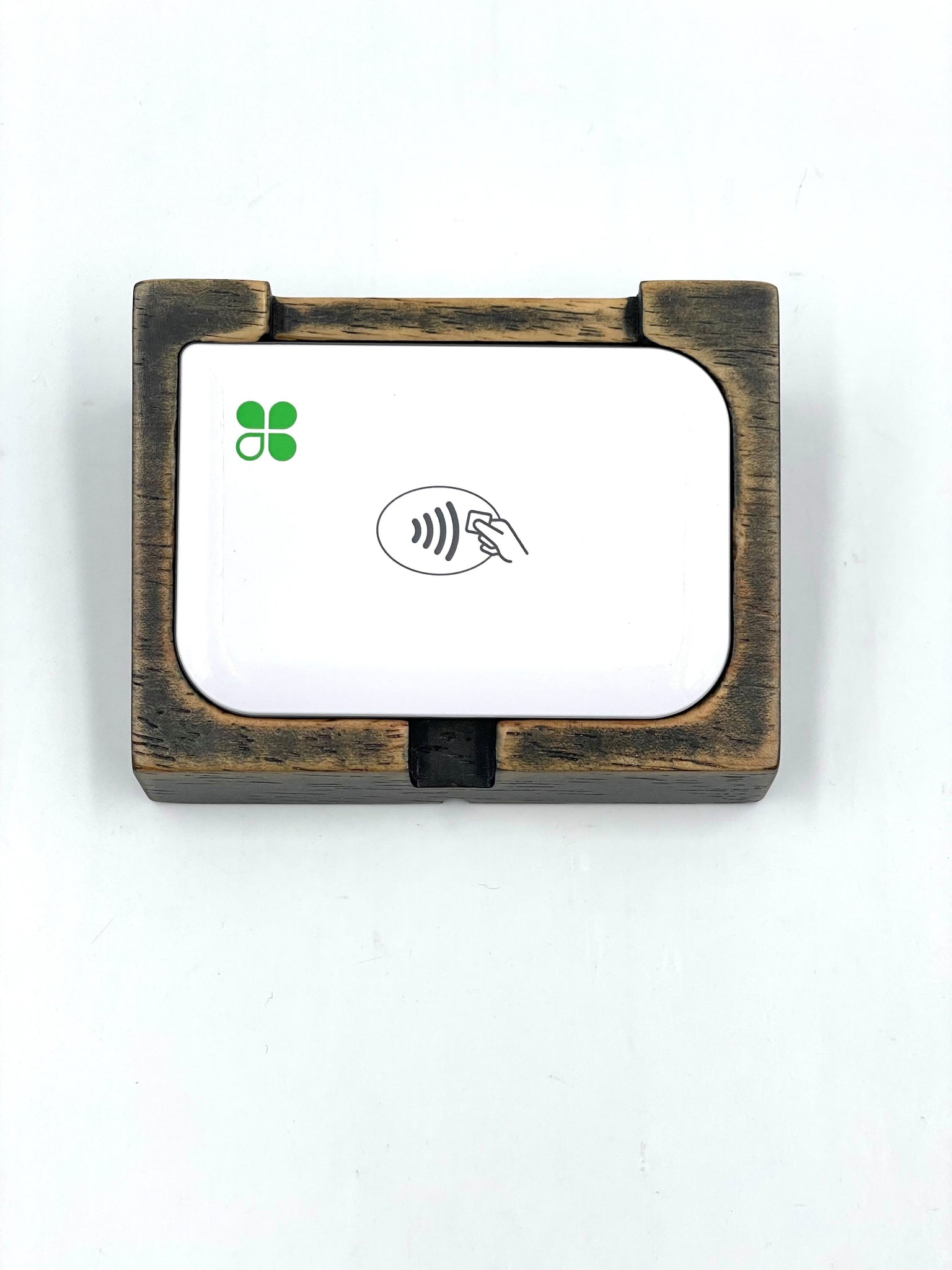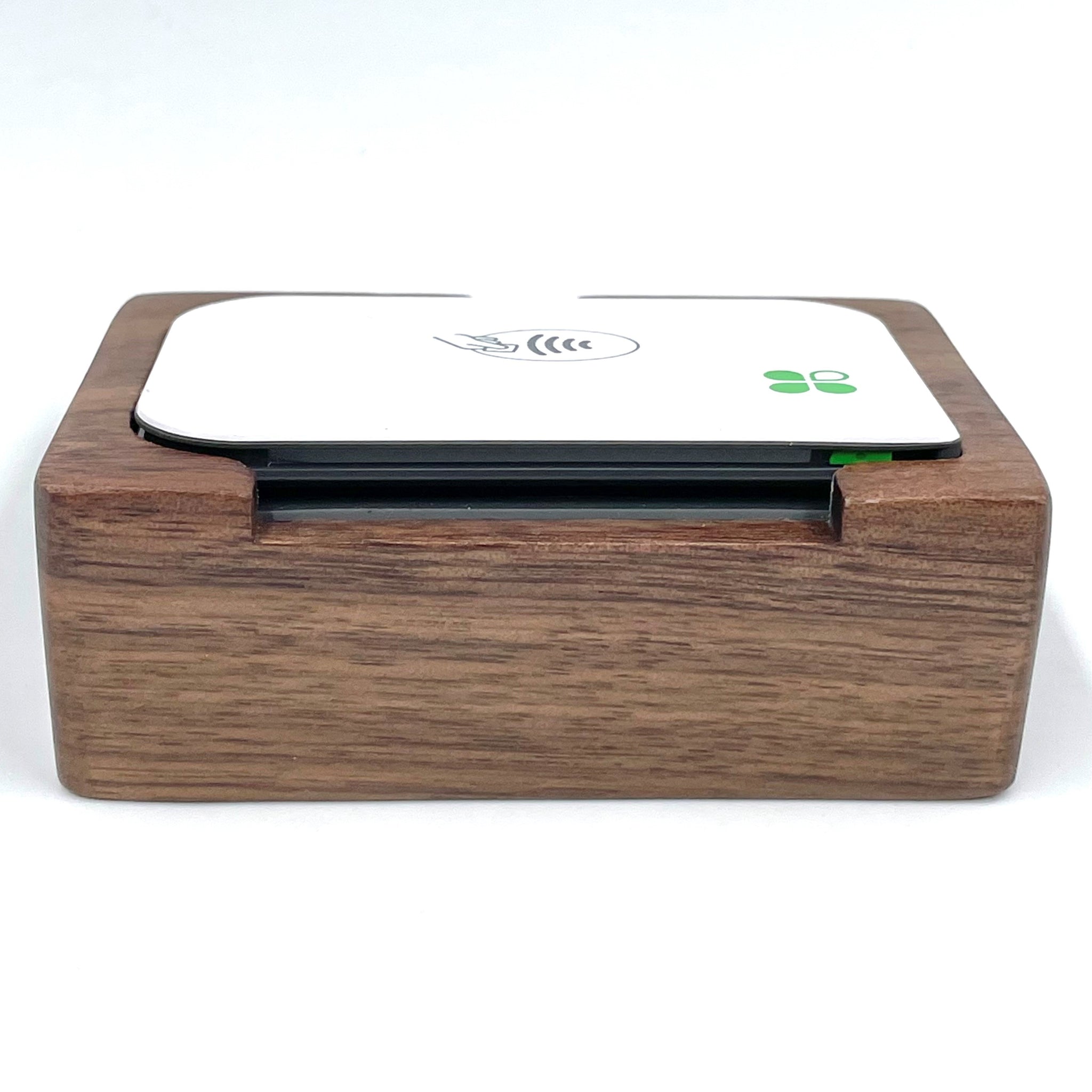 NEW! Wood Base to hold Clover Go 3 Contactless Chip Card Reader (1IK4ZZZ0001). Designed to give a solid mounting platform for your Clover Go. Designed to accommodate the charging cord.