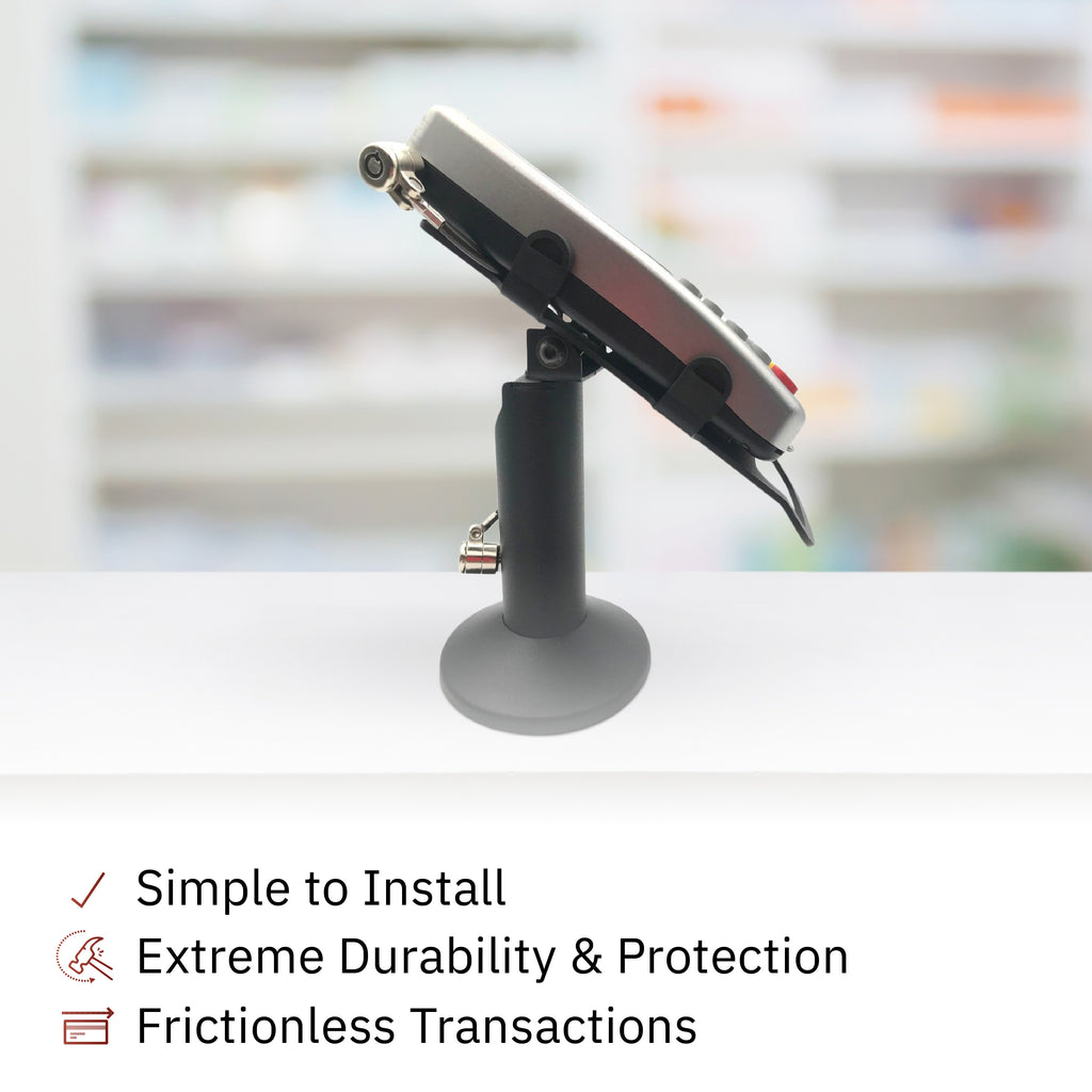 Vx805 Stand is designed to give an ergonomic and flexible mounting platform for your payment terminal and prevent damage due to the traditional “back and forth” counter top placements with each transaction. Deploying the termtable tilt and swivel stand makes for a more efficient retail experience and protects your valuable payment terminal from damage.