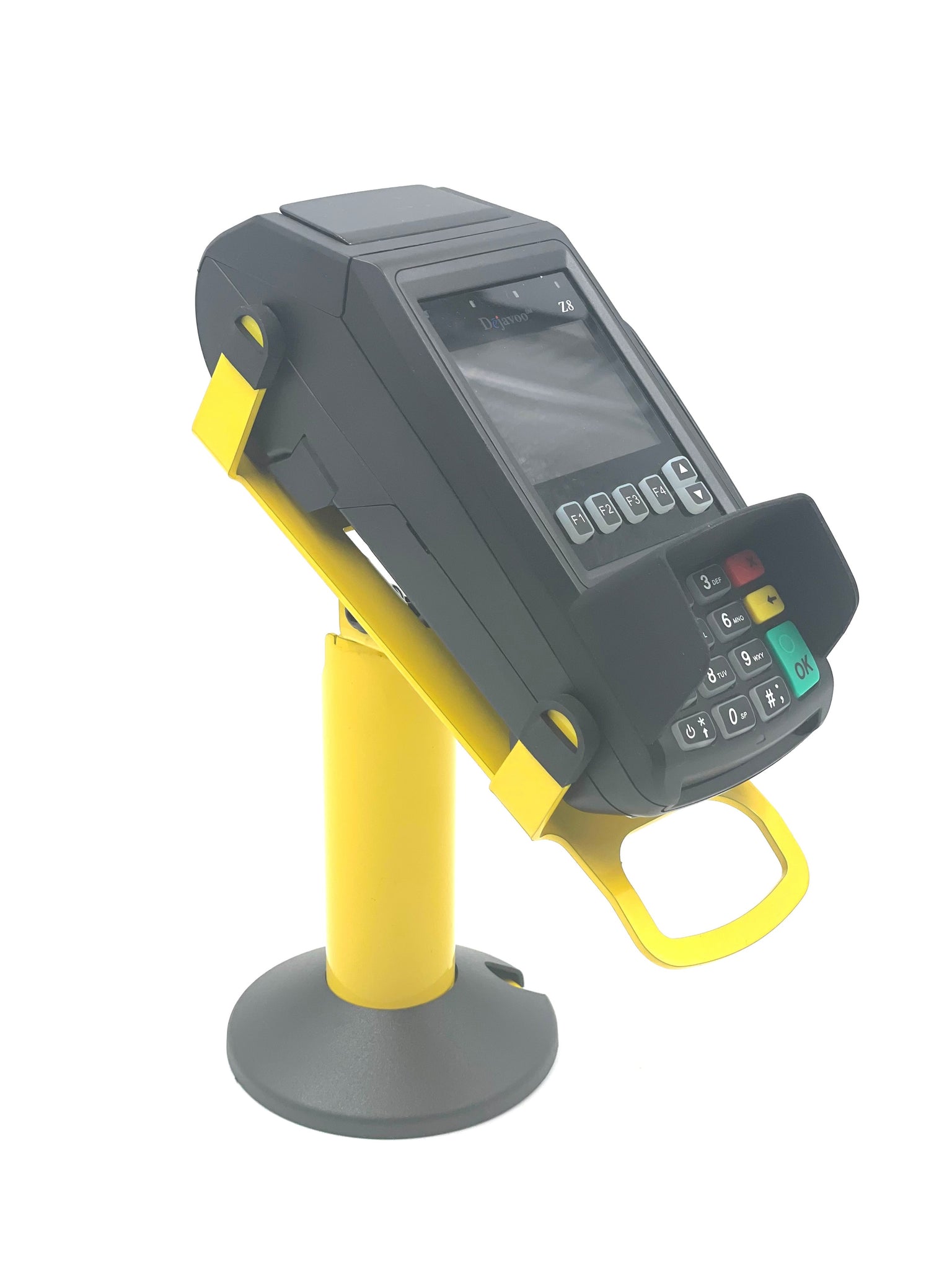 Shown in Pink for PAX S300, Gray for PAX A80, Blue for Verifone Vx675., Yellow for Square POS, Green for Square POS, and Light Yellow for Dejavoo Z8. Available for most terminals and PIN Pad types.