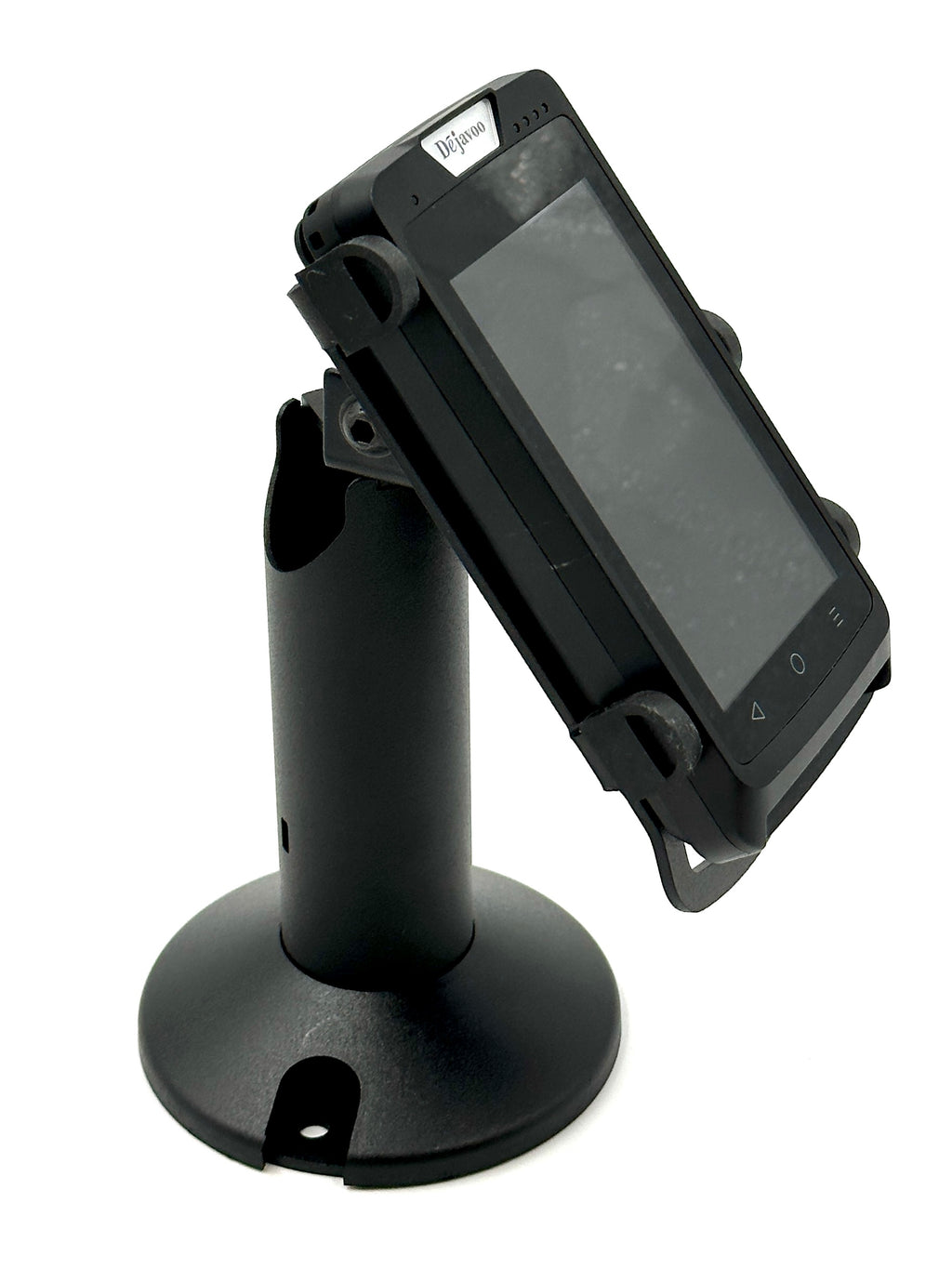 - Swivel and tilt stand is supplied fully built for a simple installation; two easy installation methods; includes screws and an adhesive pad for two options of securing holder; terminal not included; fits Dejavoo QD3 mPOS Terminal; pole stands 5.5” tall