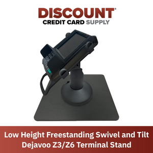 - Ultimate convenience for merchant and customer; designed to bring terminal closer to the customer; stand is upgradeable in the field with a simple top plate swap; stand is compatible with any round or square Discount Credit Card Supply freestanding plate
