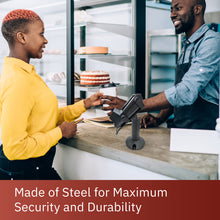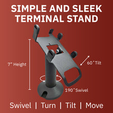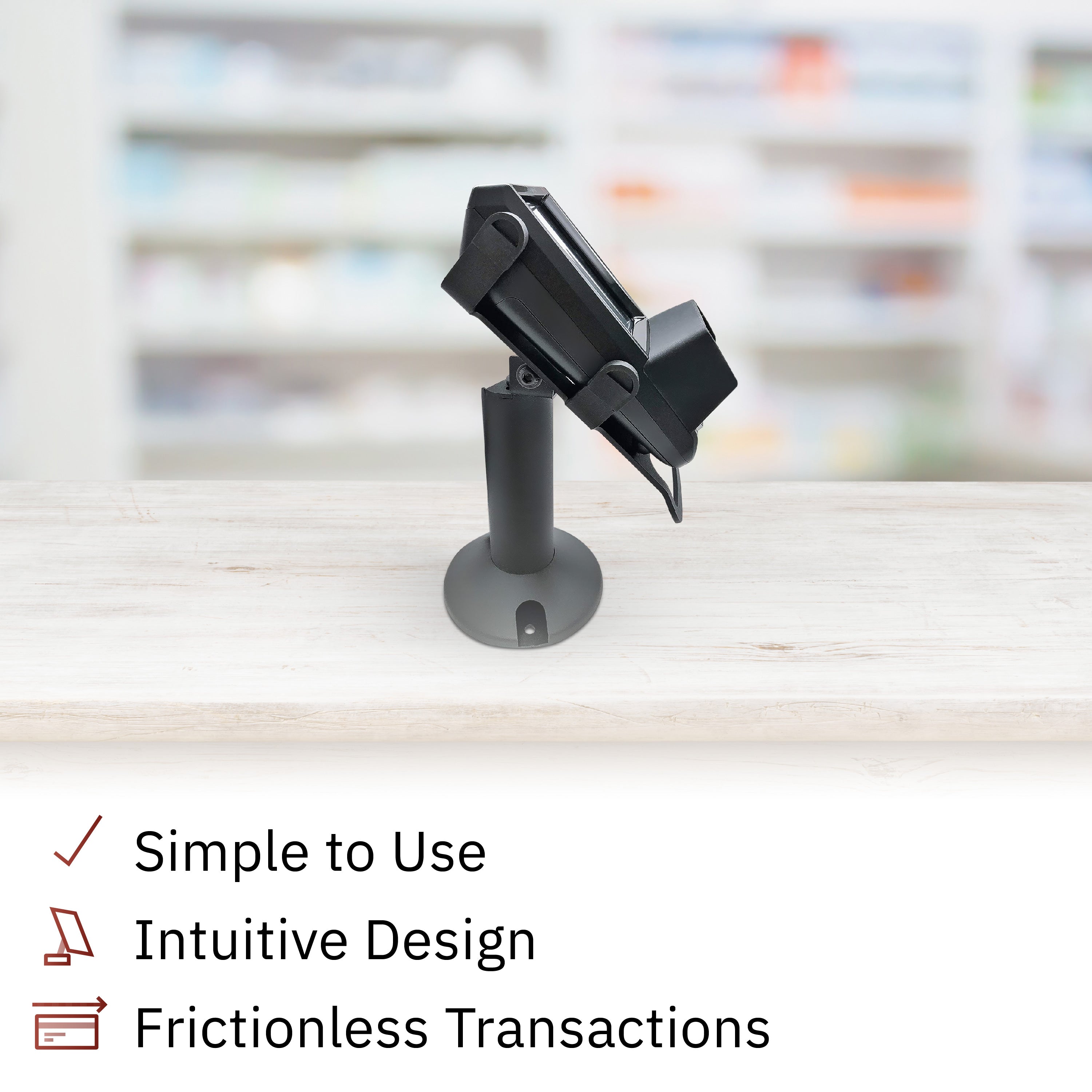 - Essential to enhance customer experience stand can tilt up to 60° and swivel a full 190°, making moving device from customer to merchant easier; improves payment transaction