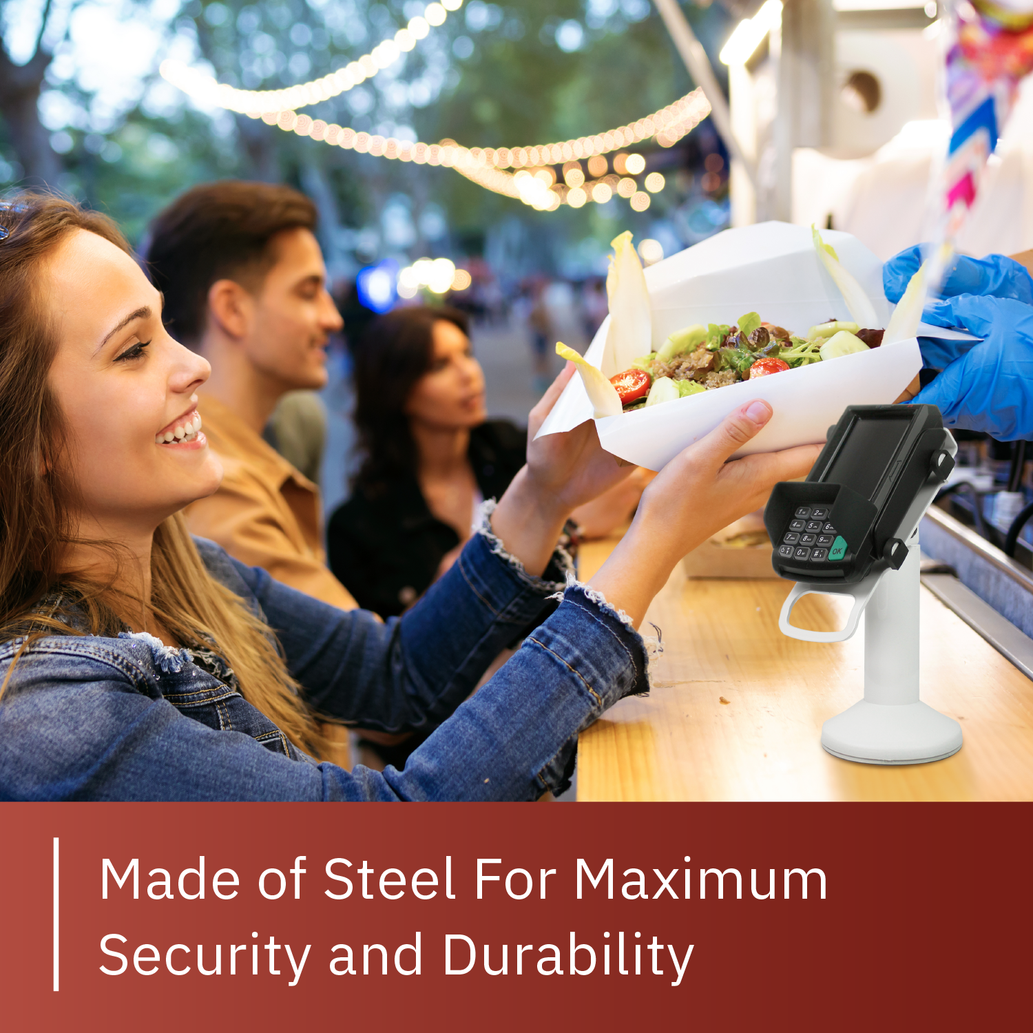 - Essential to enhance customer experience stand can tilt up to 60° and swivel a full 190°, making moving device from customer to merchant easier; improves payment transaction