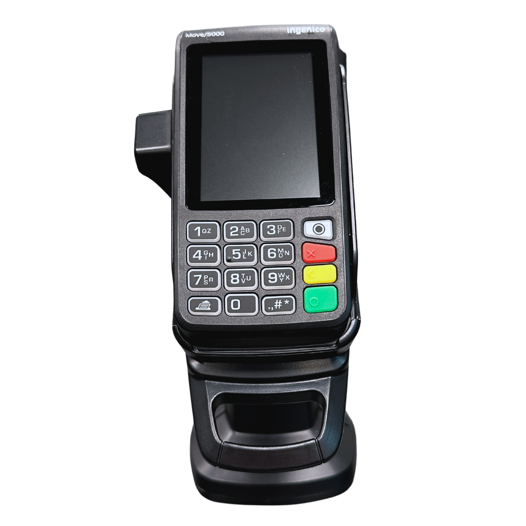 - This is a 7” pole mount terminal stand designed for the Ingenico Move 5000 terminal; stand is a lightweight composite POS system holder; design allows you to securely and invisibly hold the Ingenico Move 5000 device in place