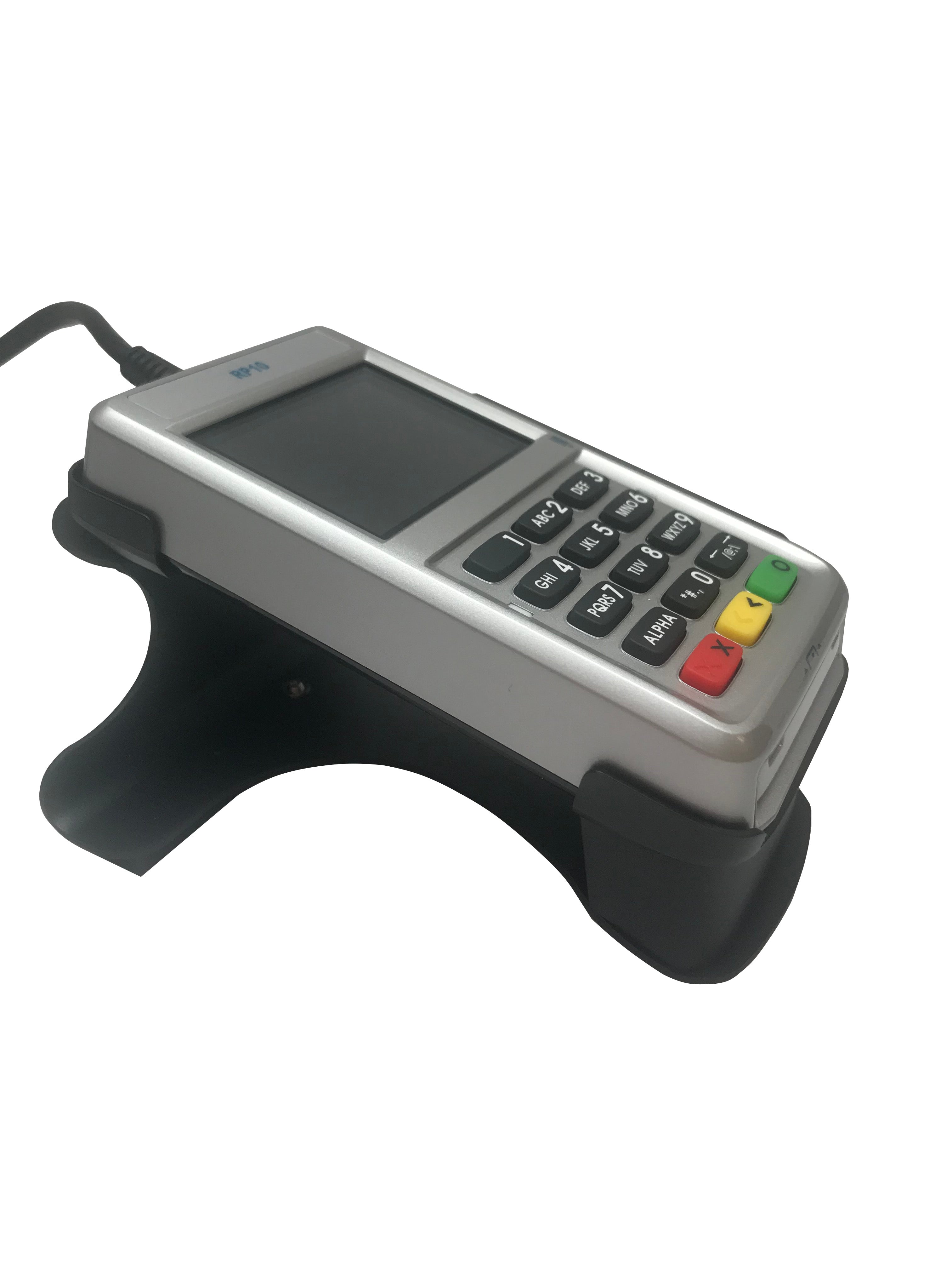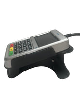 Stand for First Data RP10 PIN Pad. Made from sturdy black metal. Holds PIN Pad securely in place.