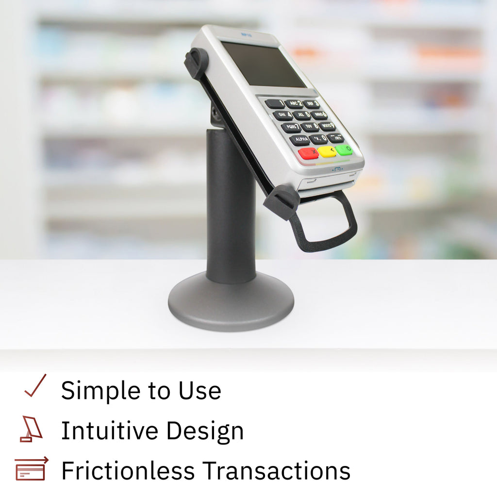 Designed to give an ergonomic and flexible mounting platform for your payment terminal and prevent damage due to the traditional “back and forth” counter top placements with each transaction. Deploying the termtable tilt and swivel stand makes for a more efficient retail experience and protects your valuable payment terminal from damage.