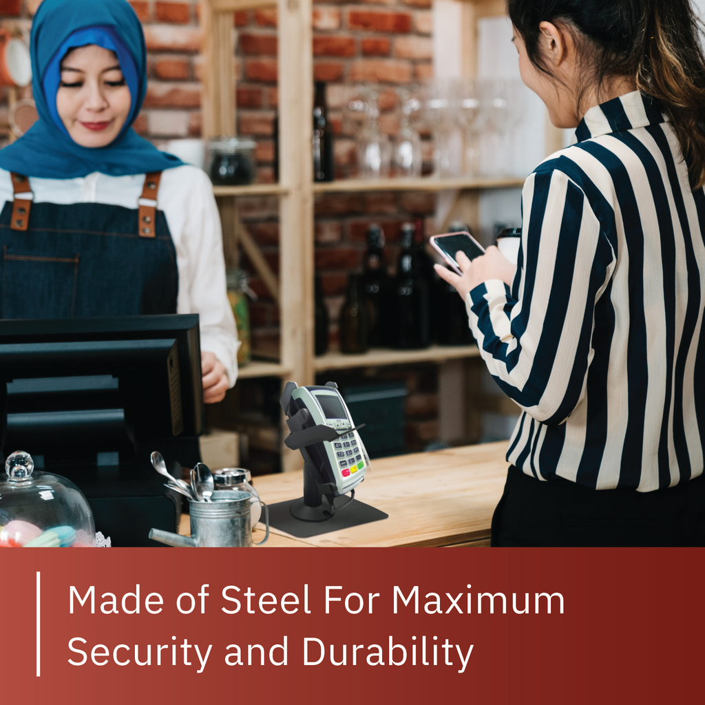 • Essential to enhance customer experience; POS terminal stand is great for customers and merchants; stand can tilt up to 60° and swivel a full 190°, making moving device from customer to merchant easier; improves payment transaction
