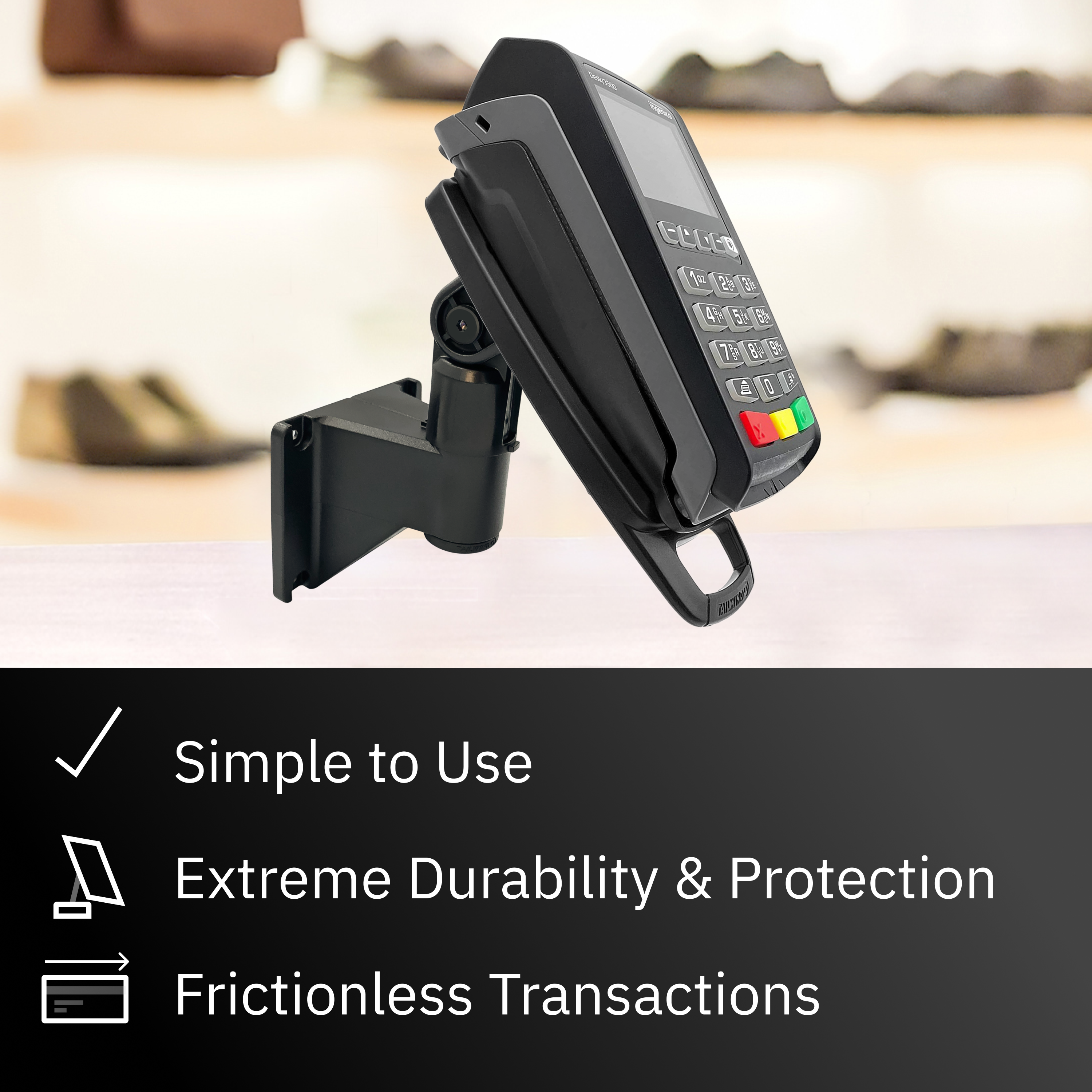 - Enhance customer experience by making your POS terminal more accessible; the wall mount makes the movement of your POS terminal from customer to merchant easier and improves overall transaction; wall mount terminal stand tilts 140° and swivels 180°