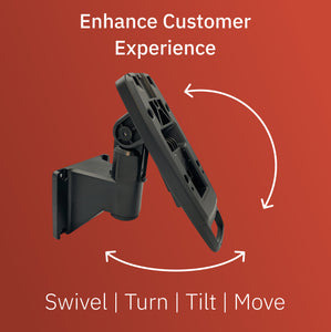 - Enhance customer experience by making your POS terminal more accessible; the wall mount makes the movement of your POS terminal from customer to merchant easier and improves overall transaction; wall mount terminal stand tilts 140° and swivels 180°