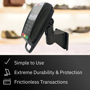 - Protect your payment device; eliminate damage and need for expensive POS terminal repairs with a wall mount terminal stand; wall mount lifts device off busy countertop area, reducing chances of dropping or spilling on it; offers more stable customer transactions