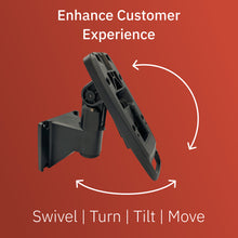 - Enhance customer experience by making your POS terminal more accessible; the wall mount makes the movement of your POS terminal from customer to merchant easier and improves overall transaction; wall mount terminal stand tilts 140° and swivels 180°