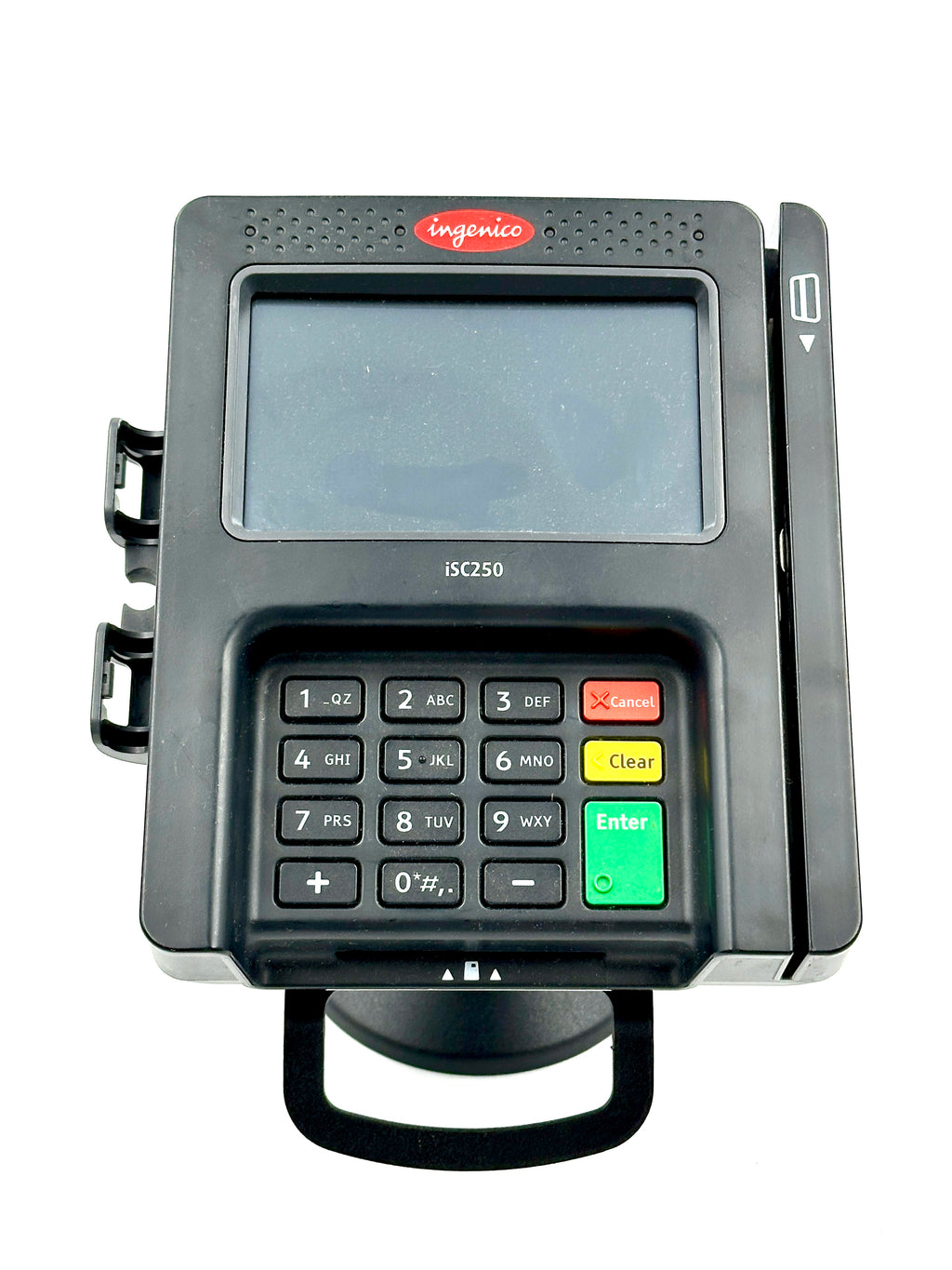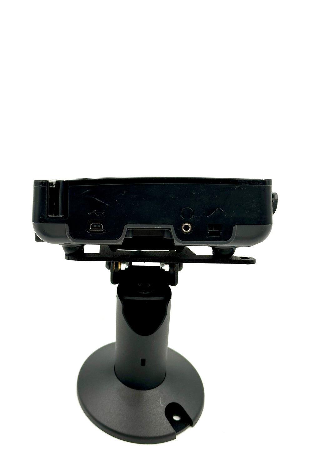 - Swivel and tilt stand is supplied fully built for a simple installation; two easy installation methods; includes screws and an adhesive pad for two options of securing holder; terminal not included; fits Ingenico ISC 250; pole stands 4” tall