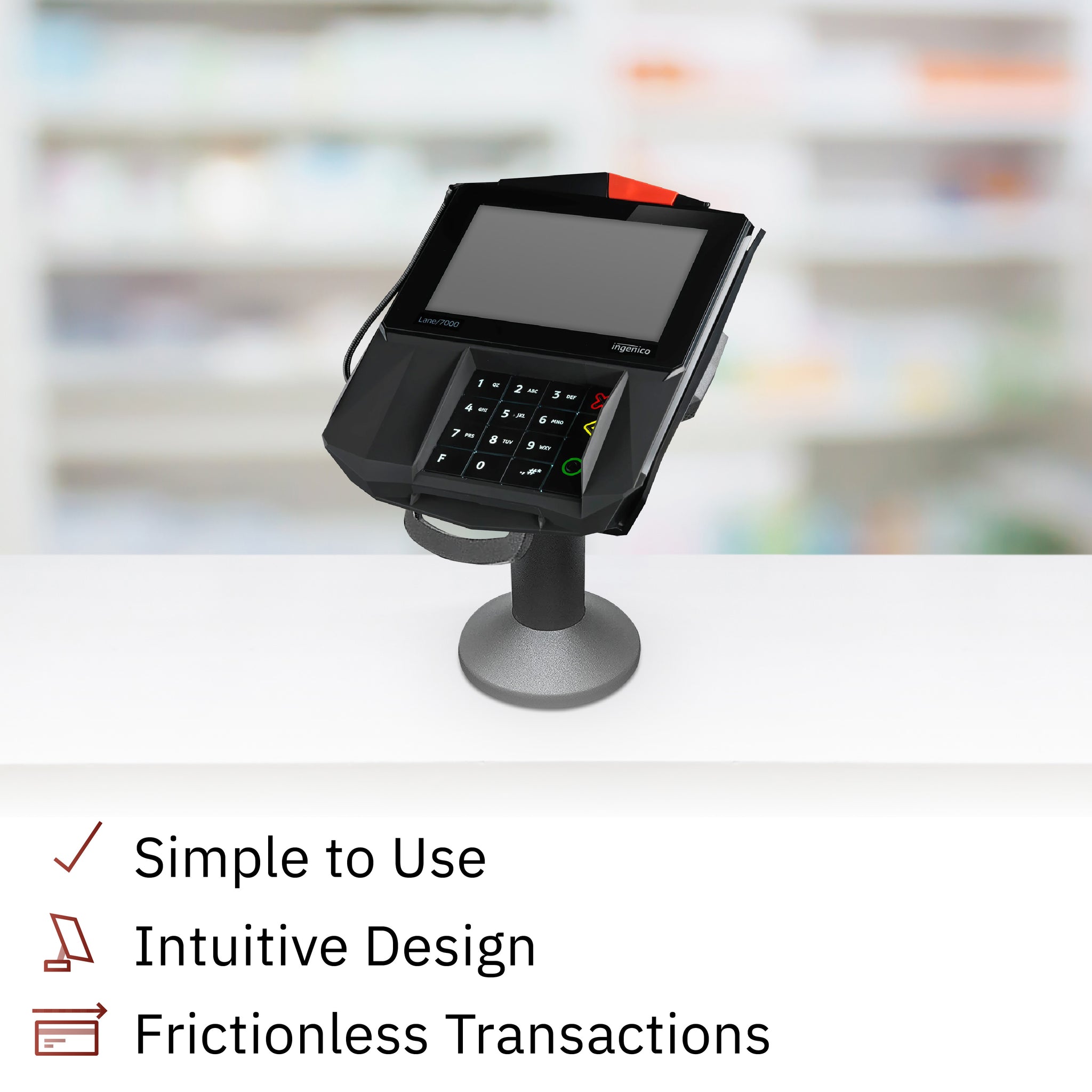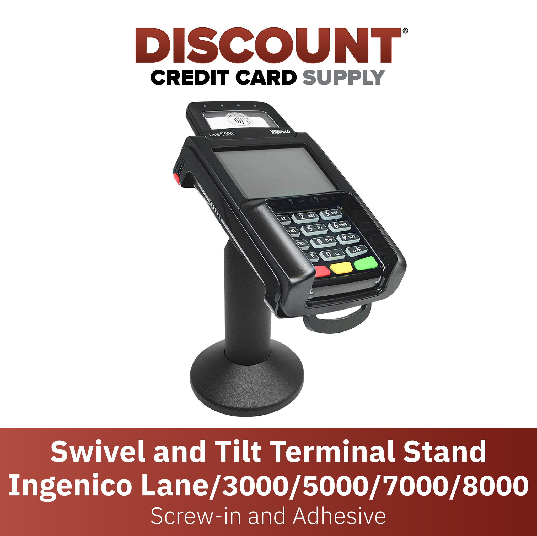 • Swivel and tilt stand is supplied fully built for a simple installation; two easy installation methods; includes screws and an adhesive pad for two options of securing holder; terminal not included; fits Ingenico Lane/3000/5000/7000/8000; pole stands 5.5” tall