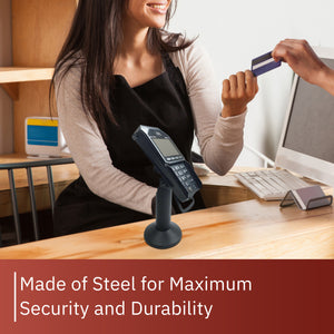 • Stand allows for seamless customer interactions with less danger of harm to equipment; flange cover hides wires and mount keeps terminal secure for minimized chances of damage and theft to POS terminal; durable powder coated finish protects stand