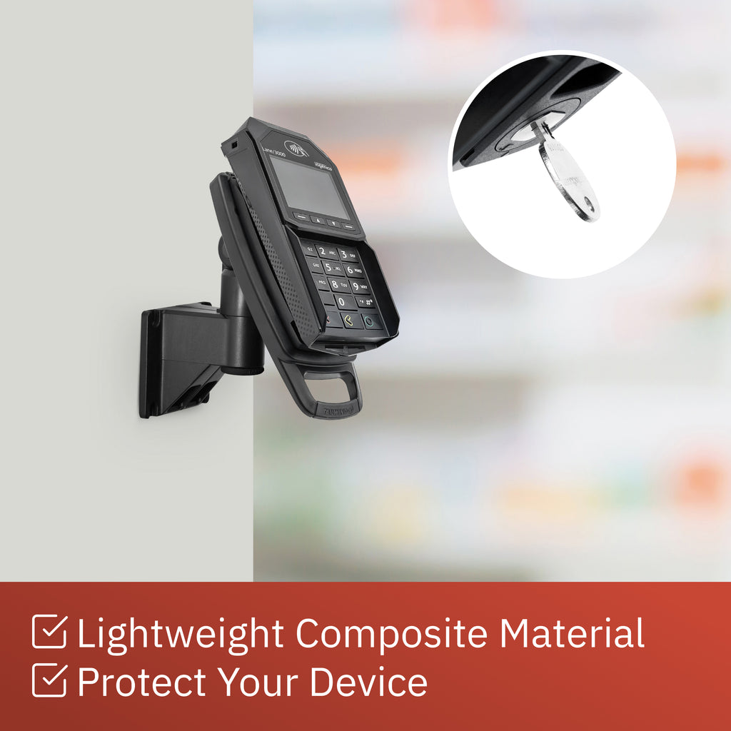 - Protect your payment device; eliminate damage and need for expensive POS terminal repairs with a wall mount terminal stand; wall mount lifts device off busy countertop area, reducing chances of dropping or spilling on it; offers more stable customer transactions