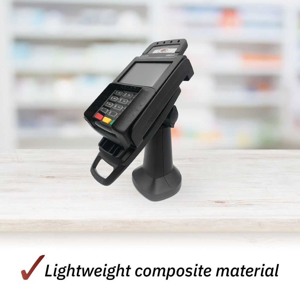 Protect and preserve the POS terminals on your counters with our pole mount IngenicoLane/5000 stand; extends the life of the terminal by minimizing cable damage