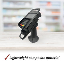 Enhance customer experience by lifting your POS terminal and making it more accessible; pole mount terminal stand tilts 140° and swivels 330°; tall 7" design makes movement of your device from customer to merchant easier; improves overall payment transaction