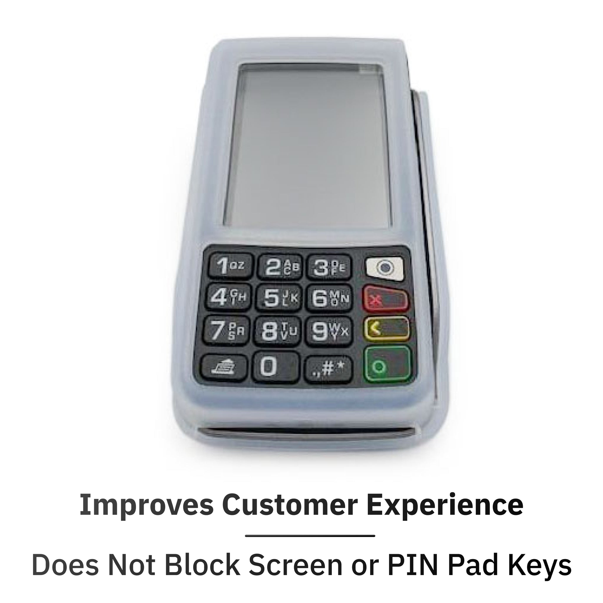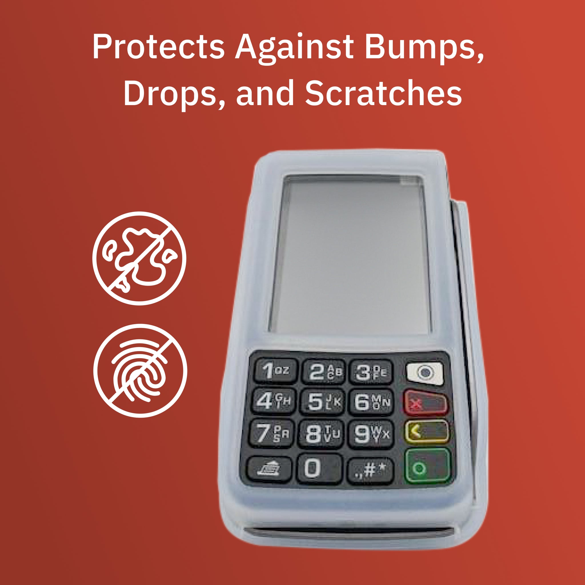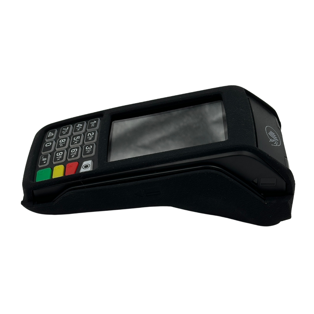 This is a black silicone sleeve designed to protect your Ingenico Move/5000 terminal from accidental damage and scuffing. Move/5000 terminal not included. The terminal will not charge on a charging base while the silicone cover is on.