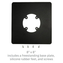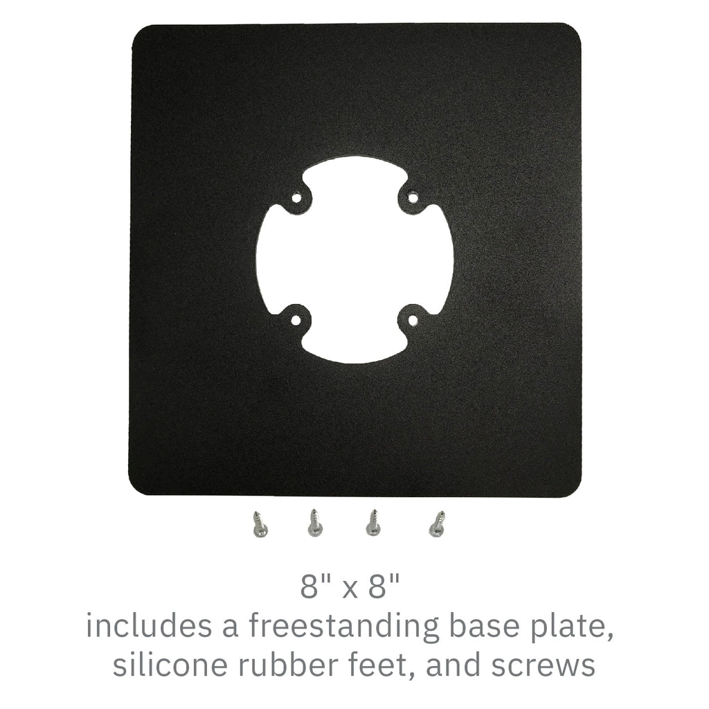 - Includes 8" x 8" square countertop plate which increases flexibility and allows the mount to be freestanding. Simply screw the stand to the plate with enclosed screws.