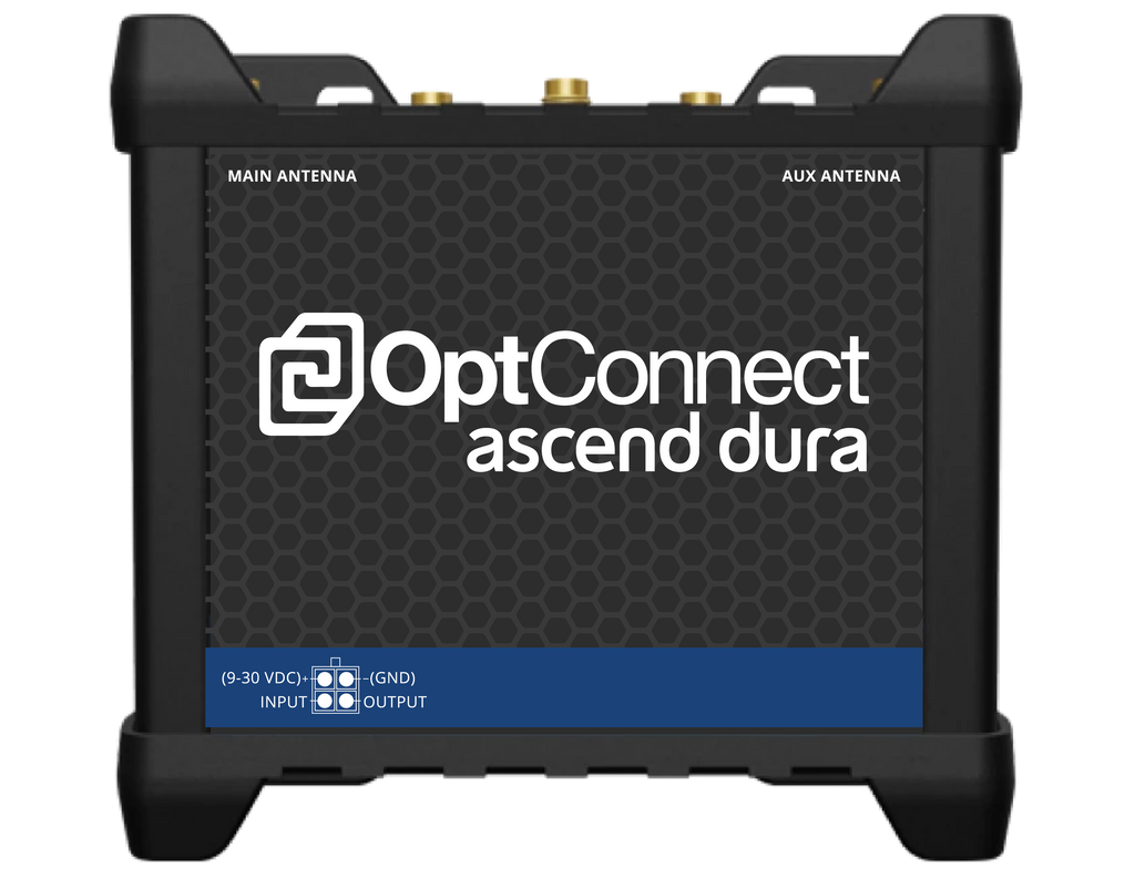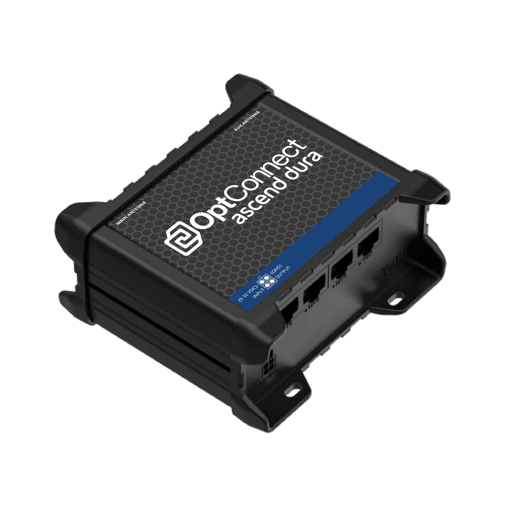 OptConnect ascend dura features 4G LTE CAT 4 connectivity and dual-carrier redundancy. Built for industrial IoT applications that require higher speed, with Wi-Fi, 1 WAN and 3 LAN ports, always-on connection, greater bandwidth for flexible interfaces, and real-time monitoring and management. Use it as a primary or backup internet source to guarantee a reliable connection with high data throughput and data redundancy in industrial sites.
