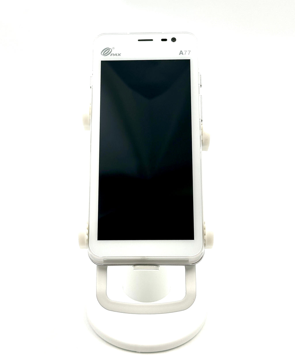 - Swivel and tilt stand is supplied fully built for a simple installation; two easy installation methods; includes screws and an adhesive pad for two options of securing holder; terminal not included; fits PAX A77 ; pole stands 5.5” tall