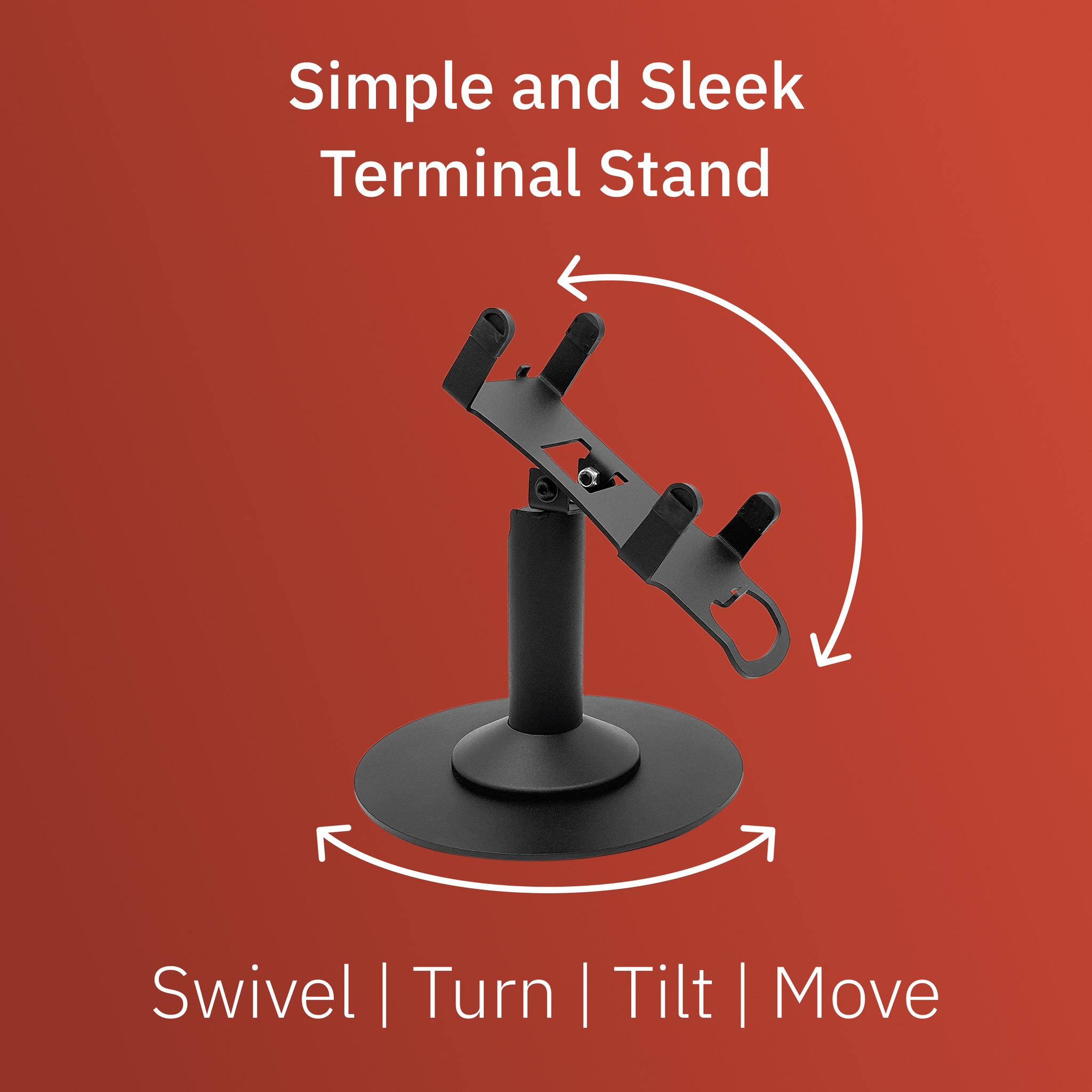 • Swivel and tilt stand is supplied fully built for a simple installation; two easy installation methods; includes screws and an adhesive pad for two options of securing holder; terminal not included; fits PAX A80 ; pole stands 5.5” tall