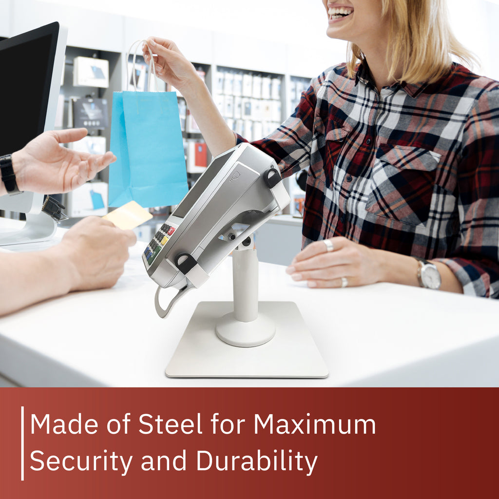 - Essential to enhance customer experience; POS terminal stand is great for customers and merchants; stand can tilt up to 60° and swivel a full 190°, making moving device from customer to merchant easier; improves payment transaction