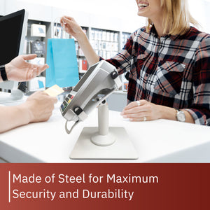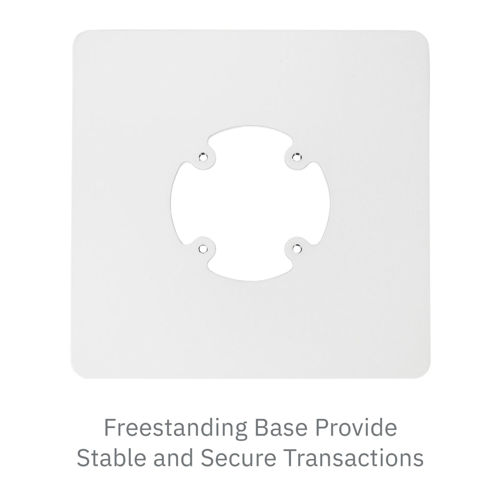 - Stand allows for seamless customer interactions with less danger of harm to equipment; flange cover hides wires and mount keeps terminal secure for minimized chances of damage and theft to POS terminal; durable powder coated finish protects stand