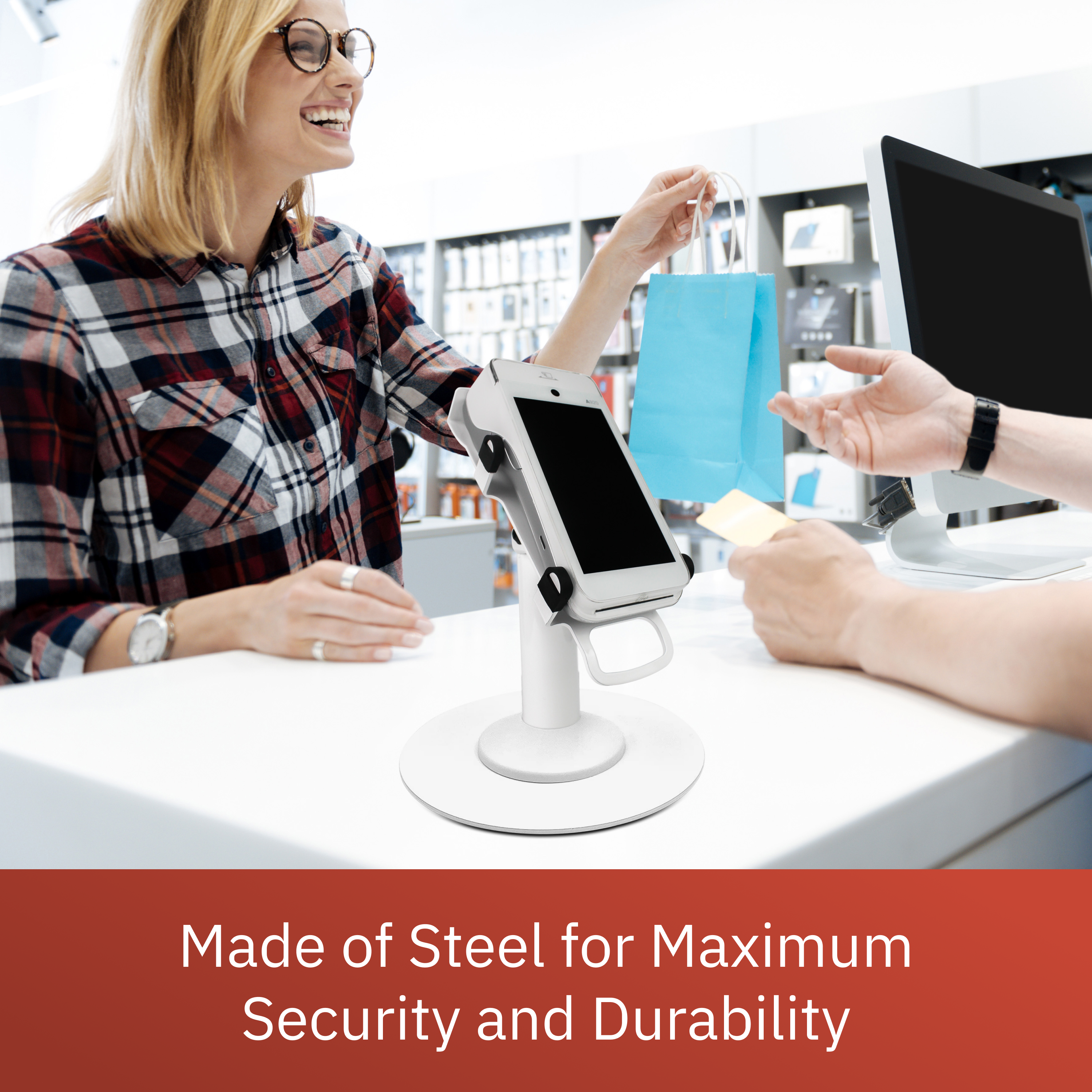 - Essential to enhance customer experience; POS terminal stand is great for customers and merchants; stand can tilt up to 60° and swivel a full 190°, making moving device from customer to merchant easier; improves payment transaction