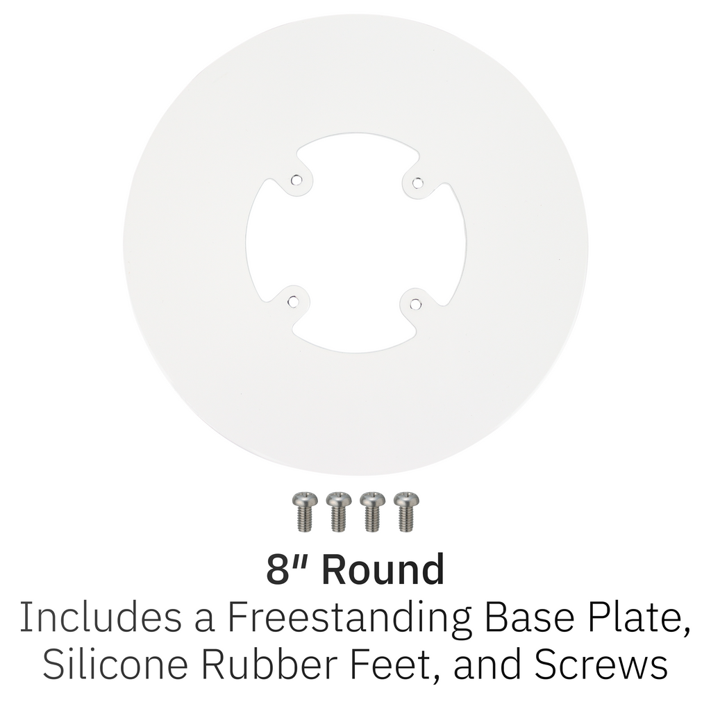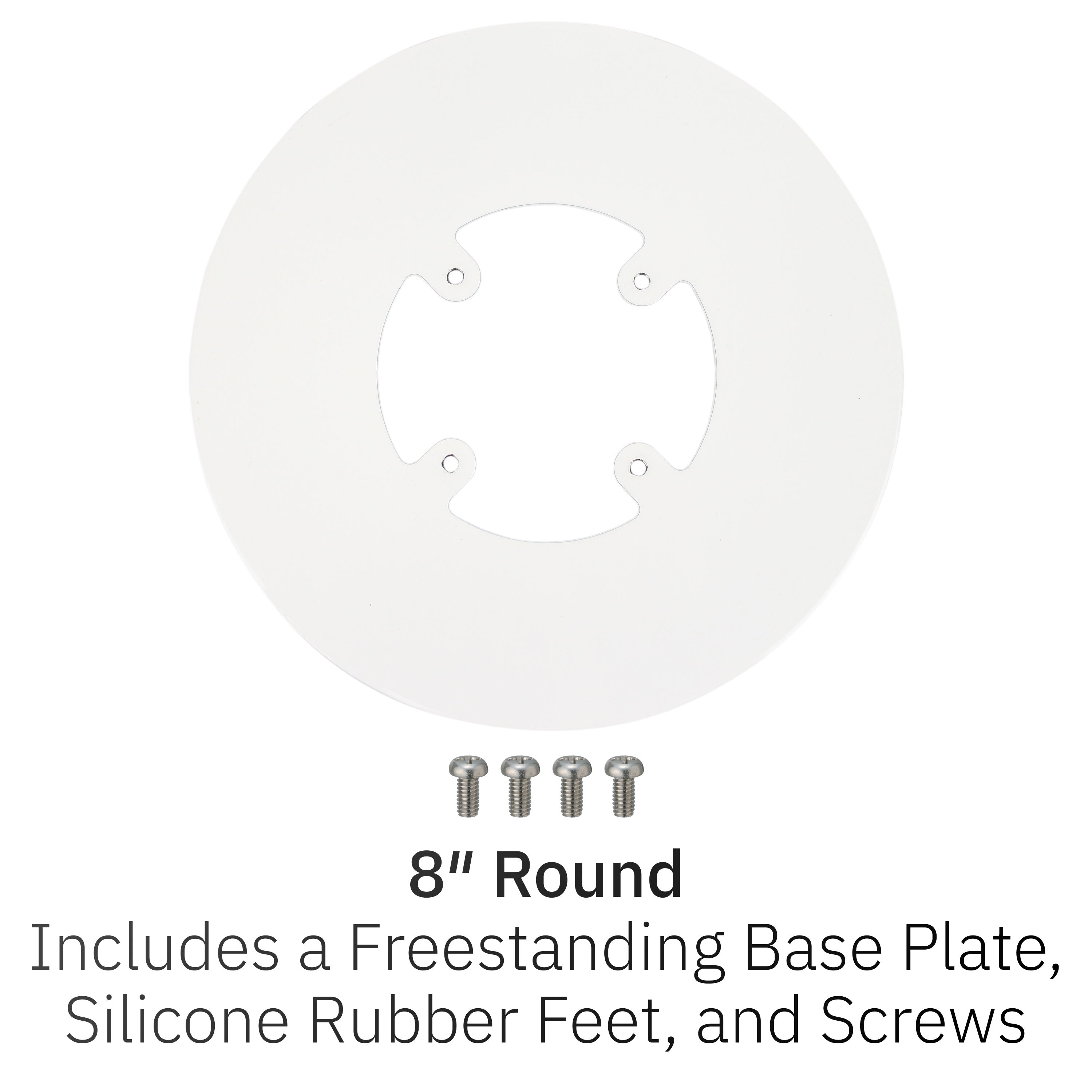 - Includes 8" x 8" round countertop plate which increases flexibility and allows the mount to be freestanding. Simply screw the stand to the plate with enclosed screws.