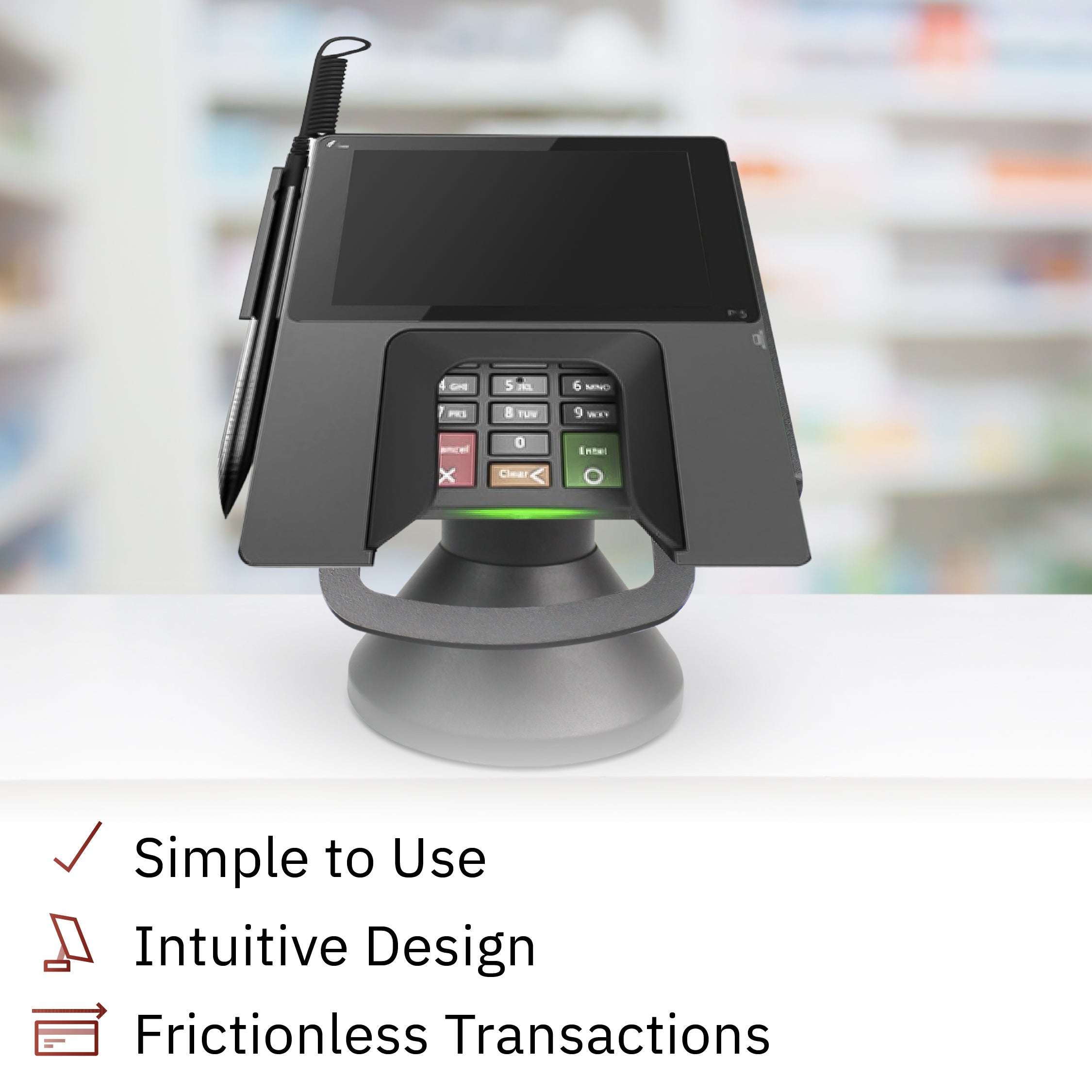 - Essential to enhance customer experience stand can tilt up to 60° and swivel a full 190°, making moving device from customer to merchant easier; improves payment transaction