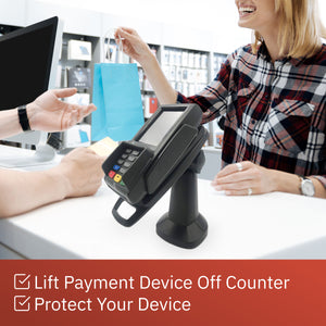 - Enhance customer experience by lifting your POS terminal and making it more accessible; pole mount terminal stand tilts 140° and swivels 330°; tall 7" design makes movement of your device from customer to merchant easier; improves overall payment transaction