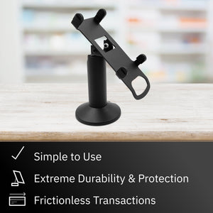 - Swivel and tilt stand is supplied fully built for a simple installation; two easy installation methods; includes screws and an adhesive pad for two options of securing holder; terminal not included; fits PAX S920 ; pole stands 5.5" tall
