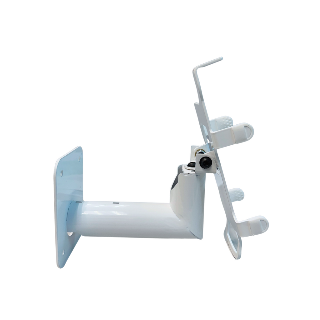 - Sturdy wall mount stand with 6" pole extension and tilt action