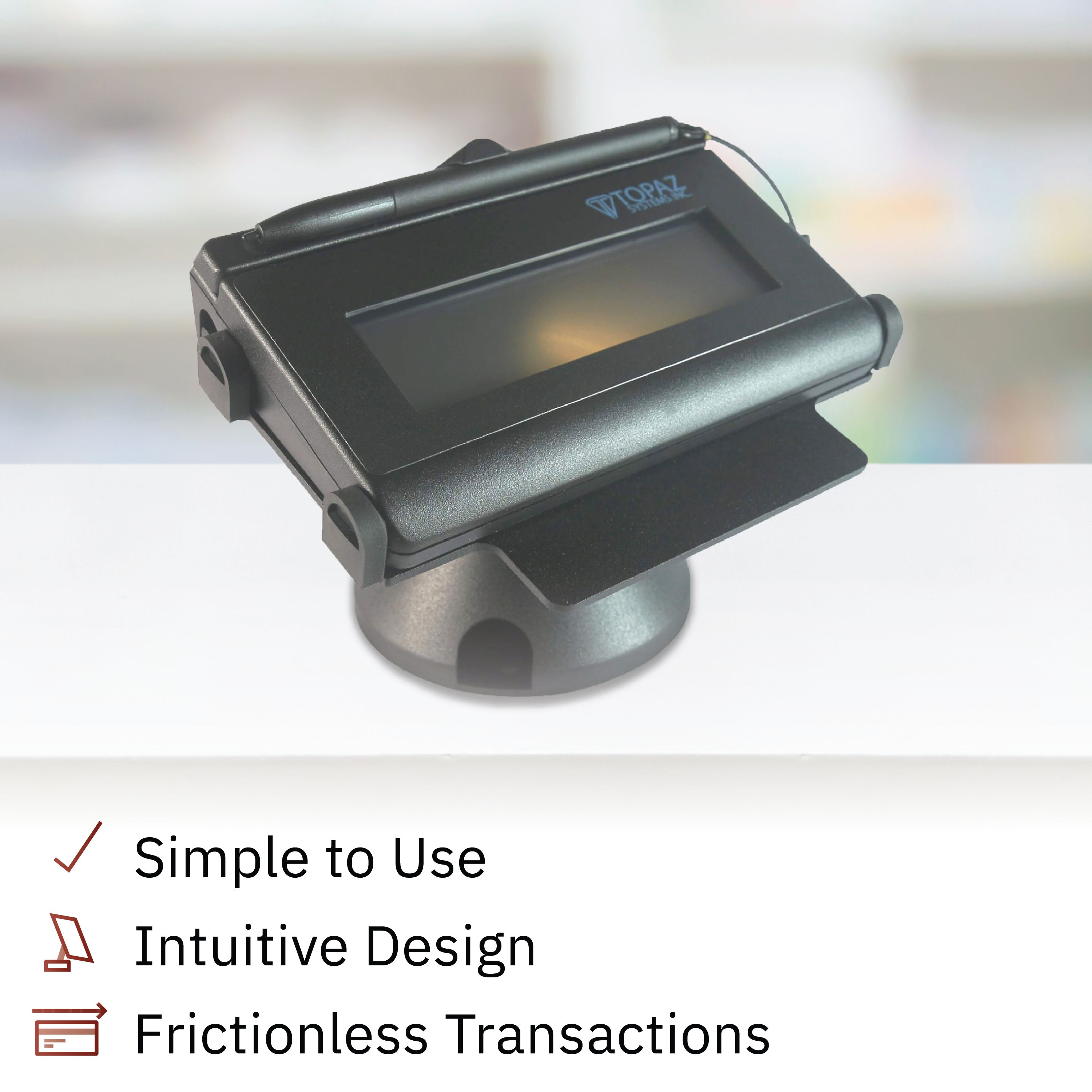NEW! Lower height swivel and tilt stand to suit the Topaz signature writing pad T-LBK460-B-R-1x5. Stands 4” high at the middle of the plate.