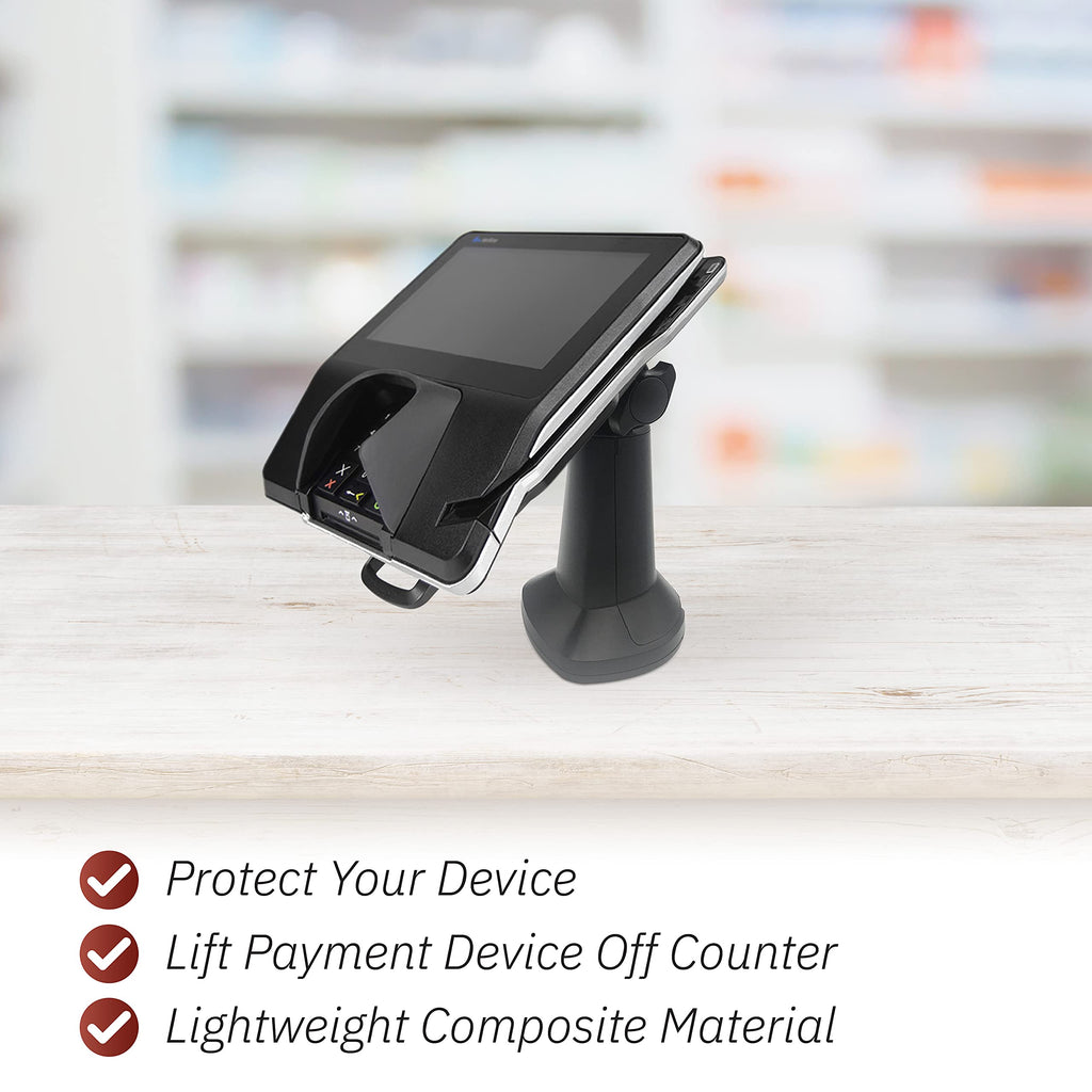 - Enhance customer experience by lifting your POS terminal and making it more accessible; pole mount terminal stand tilts 140° and swivels 330°; design makes movement of your device from customer to merchant easier; improves overall payment transaction