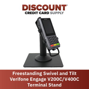 - Swivel and tilt stand is supplied fully built for a simple installation; two easy installation methods; includes screws and an adhesive pad for two options of securing holder; terminal not included; fits Verifone V200 / Verifone V400 ; pole stands 5.5” tall