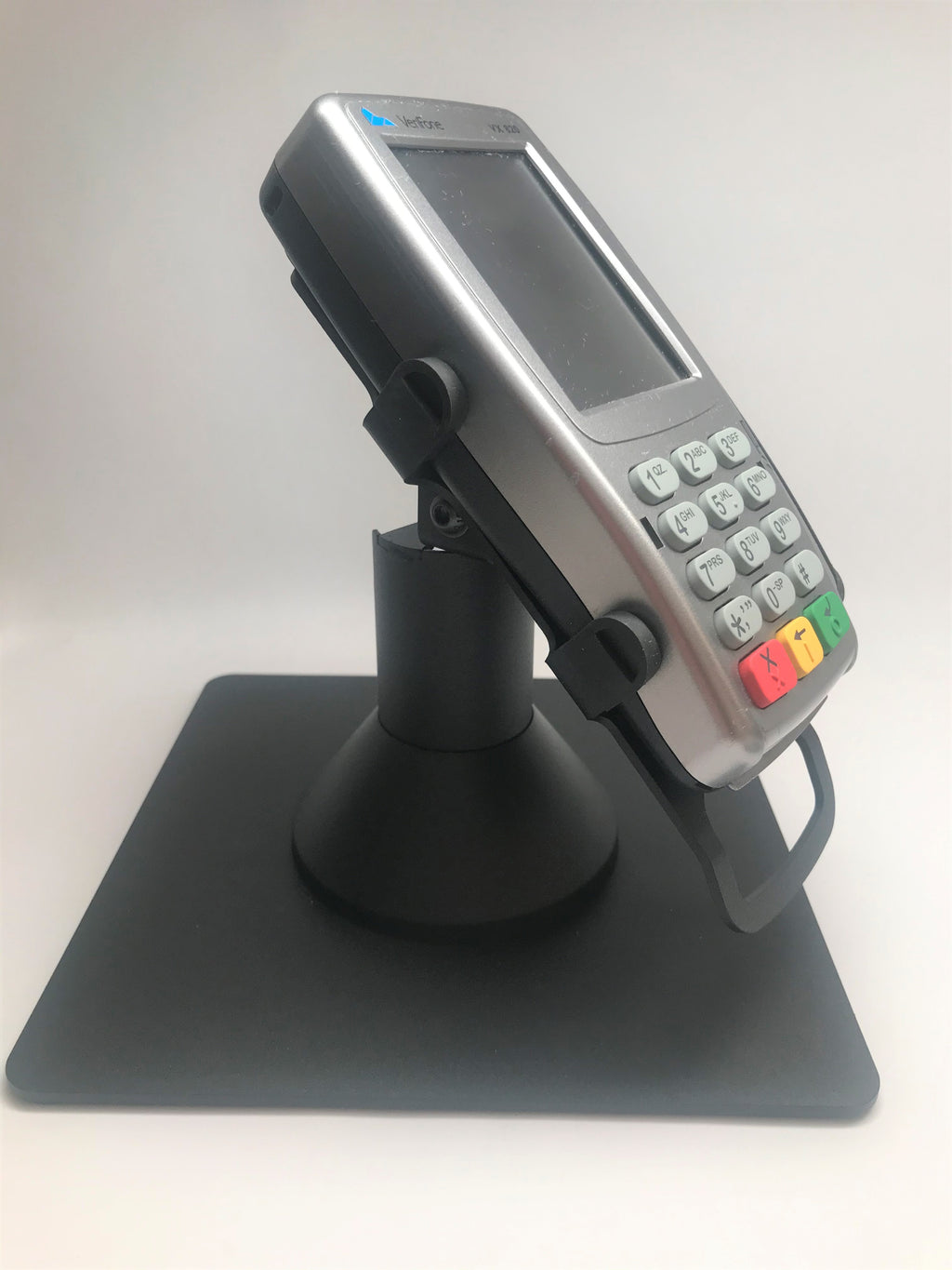 - Swivel and tilt stand is supplied fully built for a simple installation; two easy installation methods; includes screws and an adhesive pad for two options of securing holder; terminal not included; fits Verifone Vx820; pole stands 4” tall