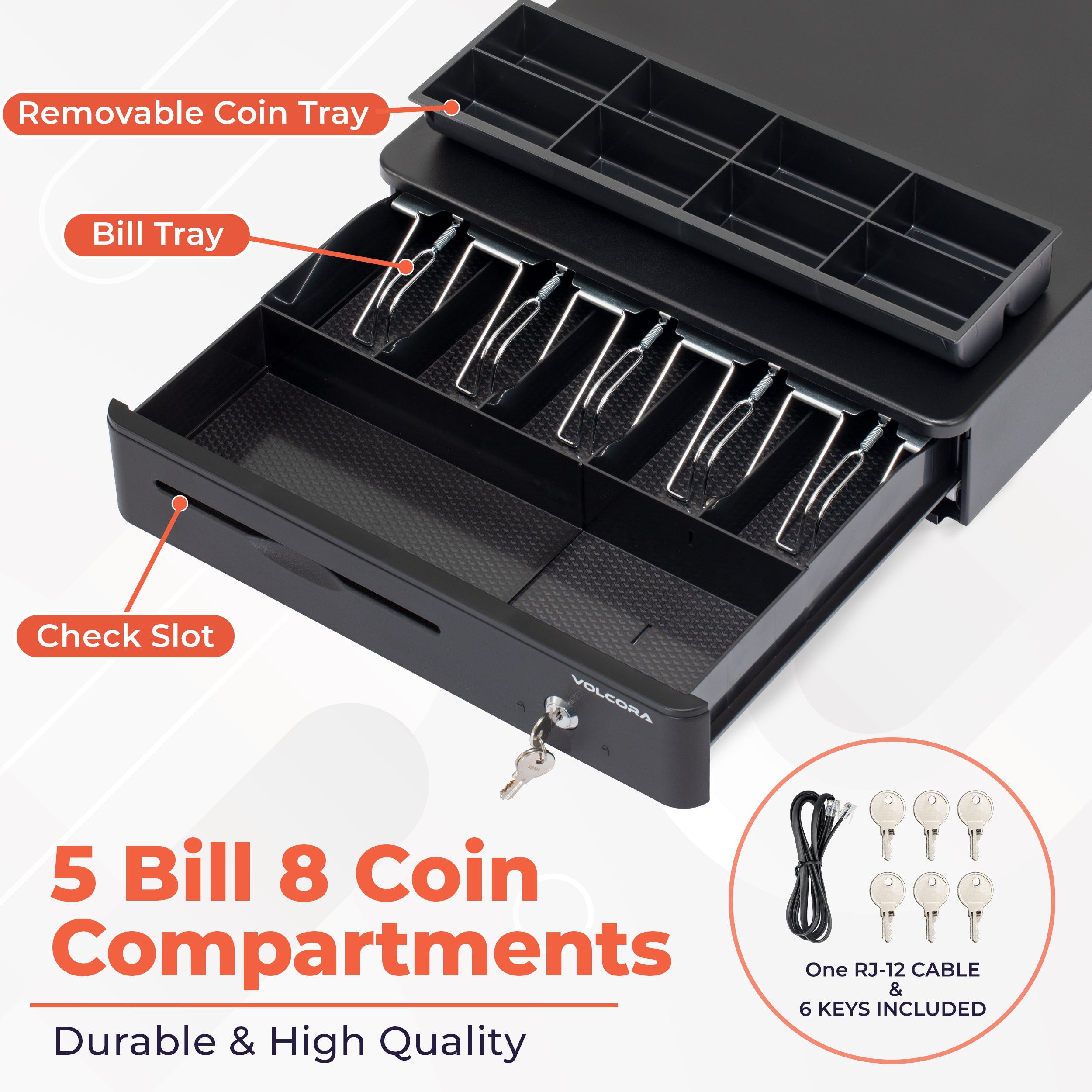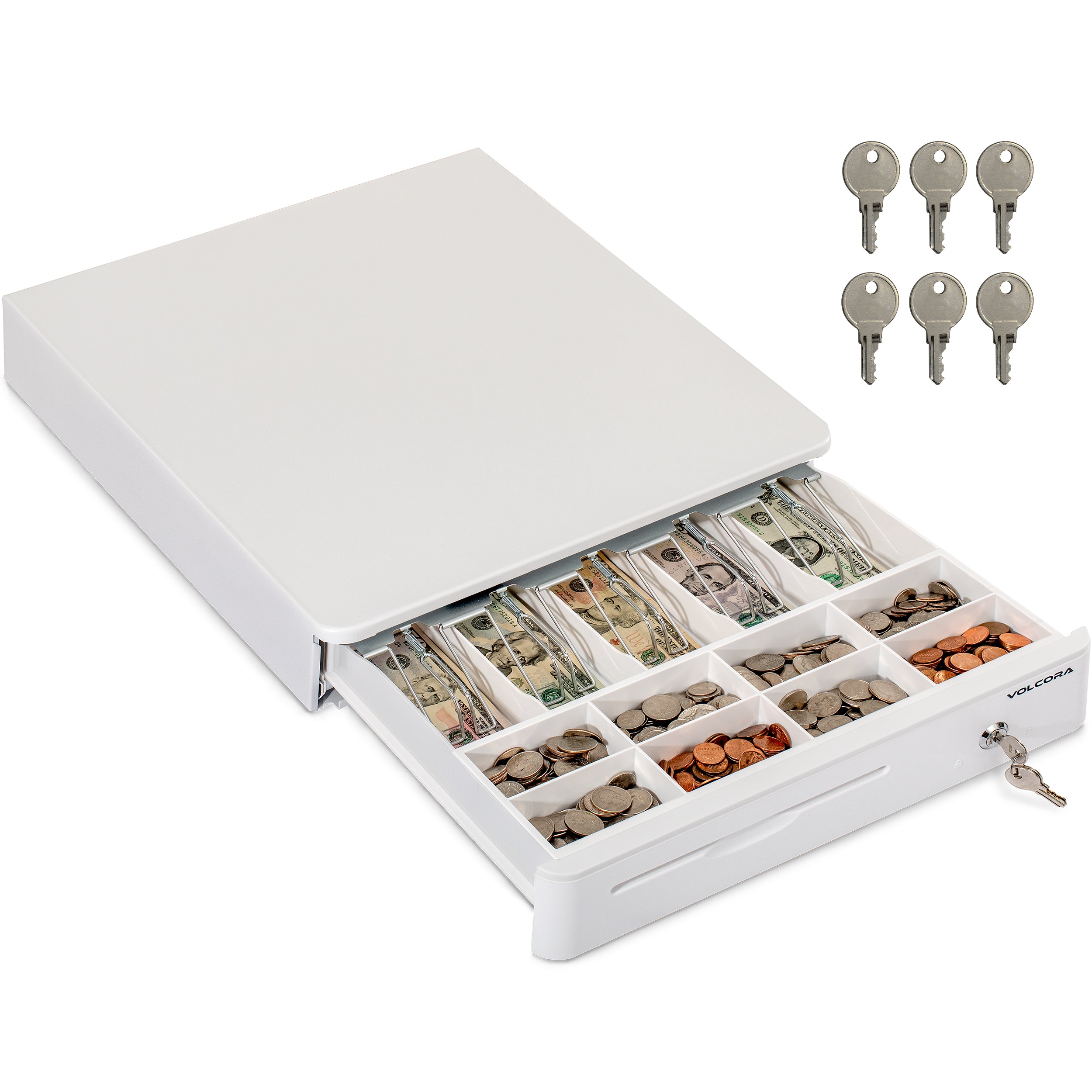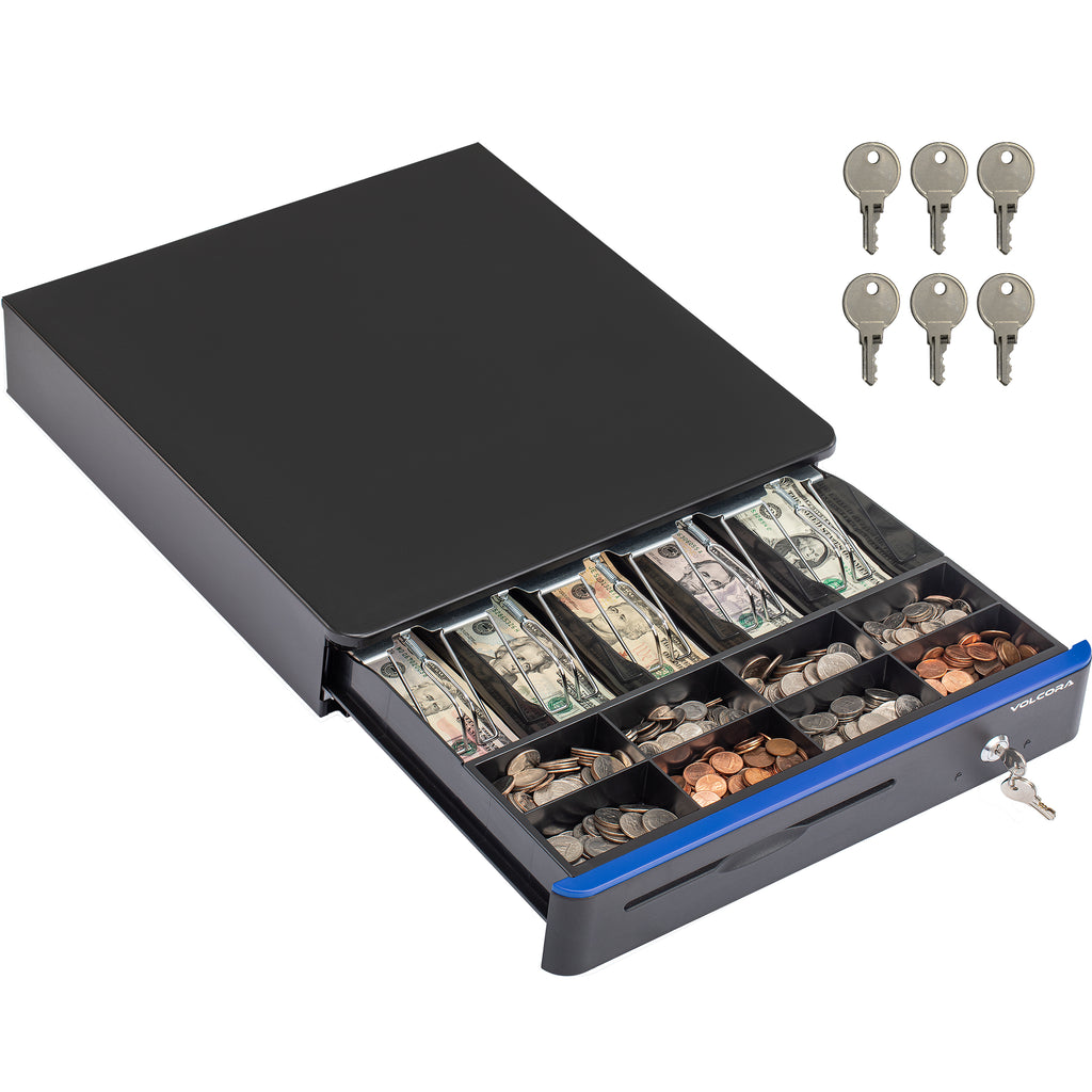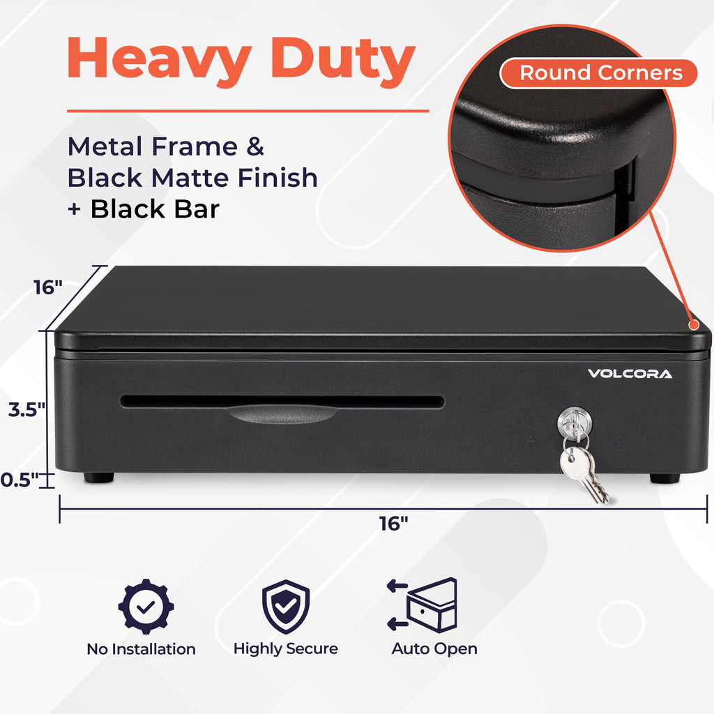 - 3-position key lock: 1-manual open, 2-auto open by printer/POS, 3-lock