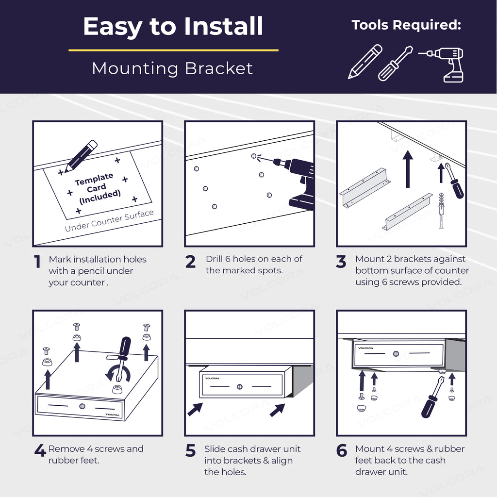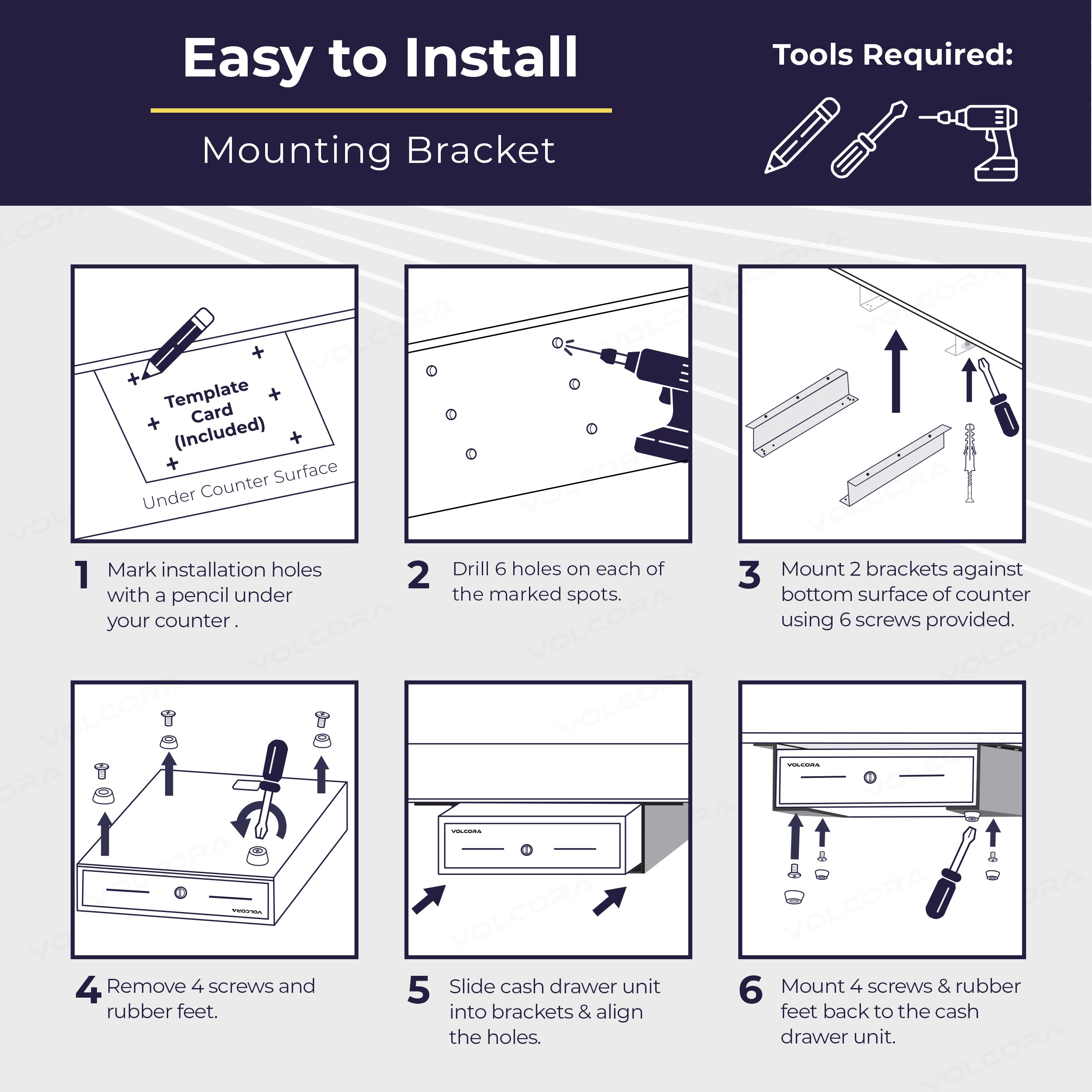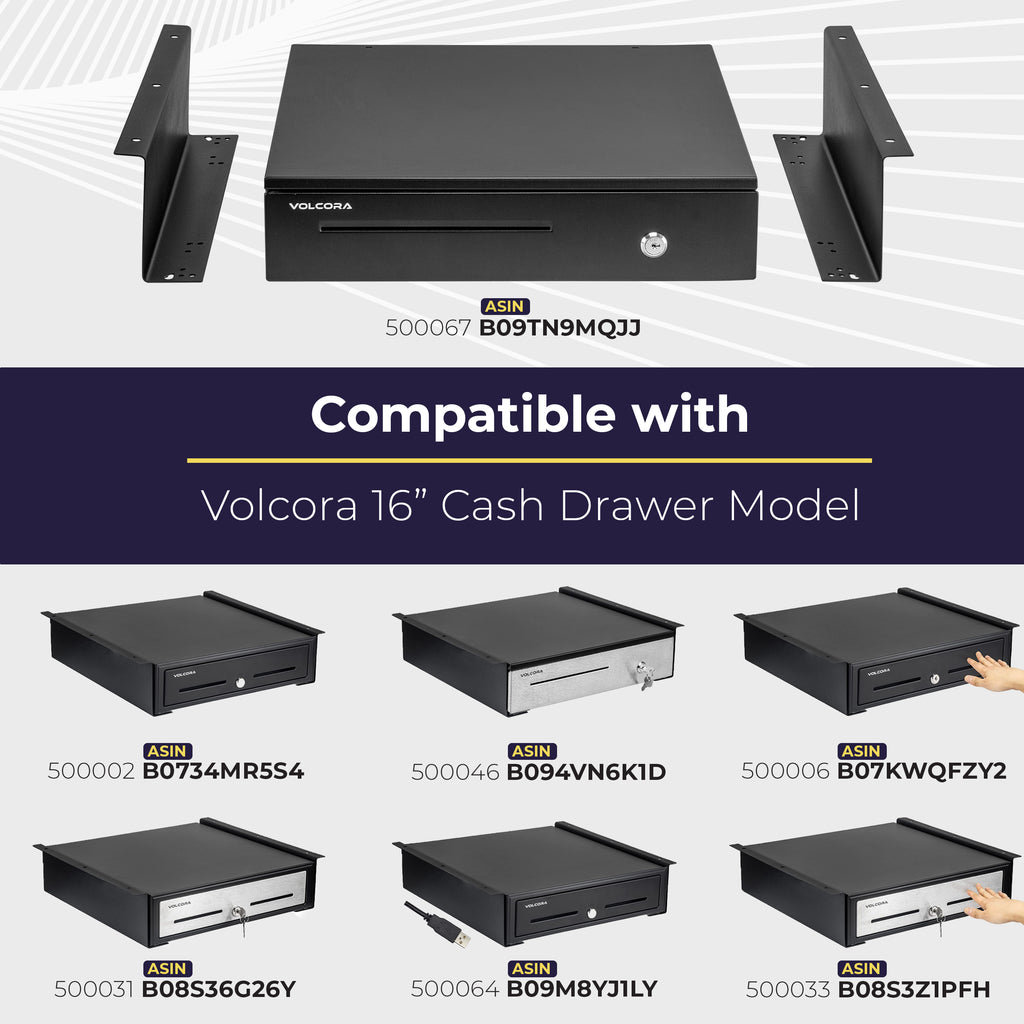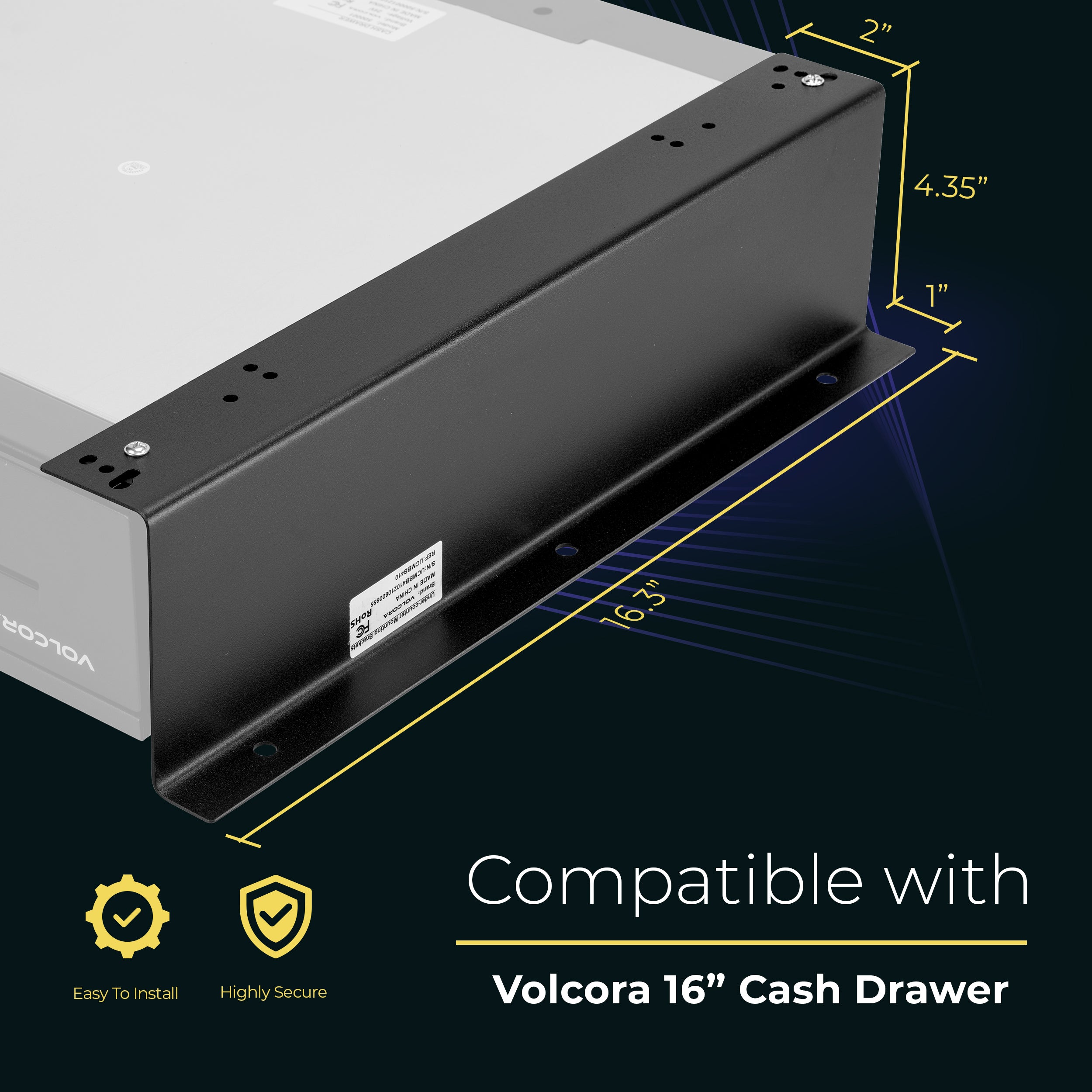 Volcora 16" x 5" x 2" Heavy Duty Steel Under Counter Mounting Bracket - Black