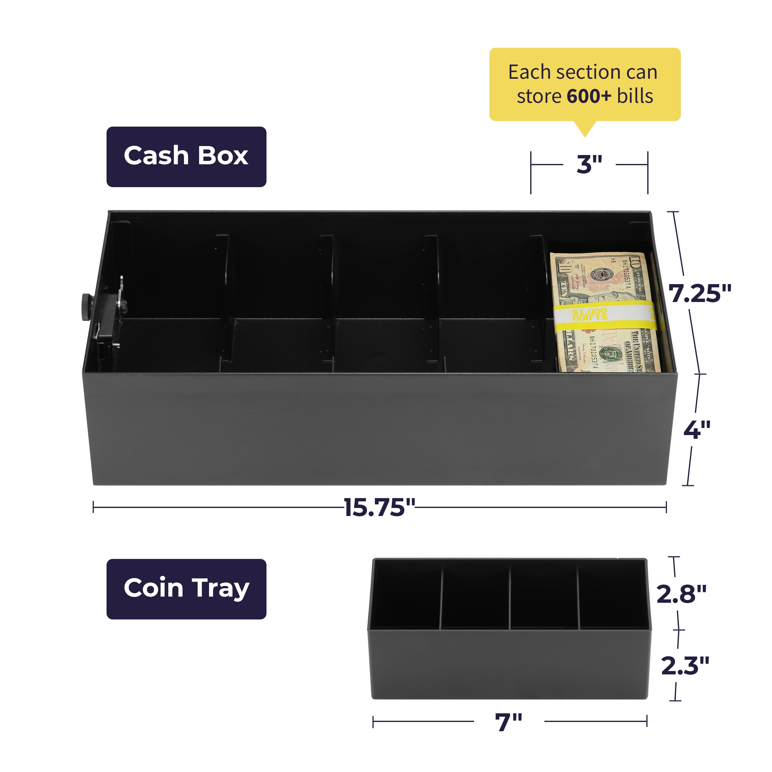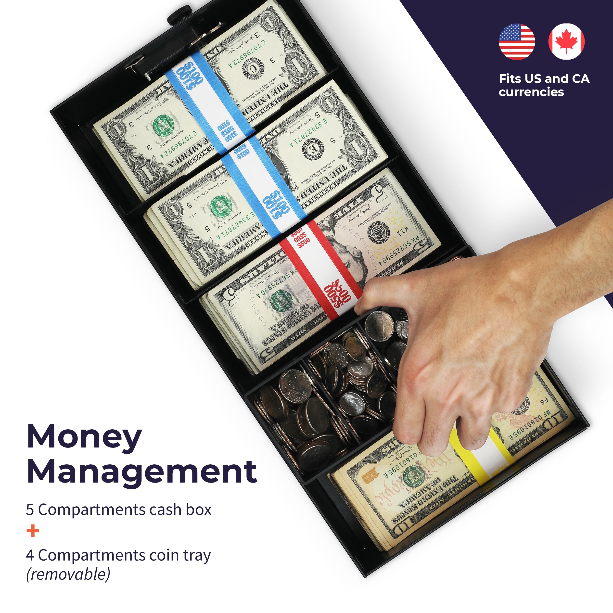 Volcora 5 Compartment Cash Lock Box with Coin Tray - Black