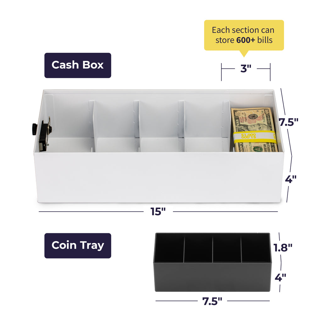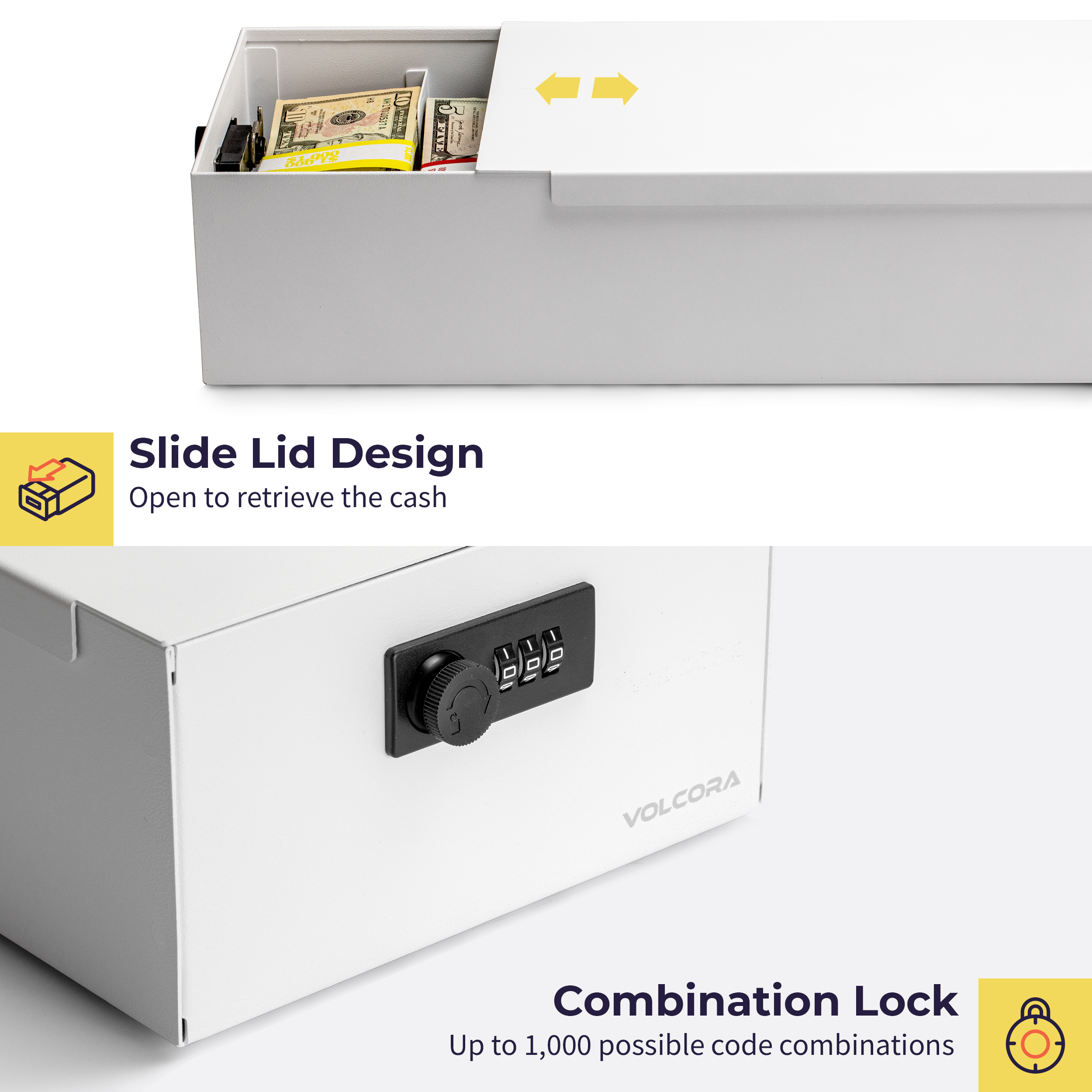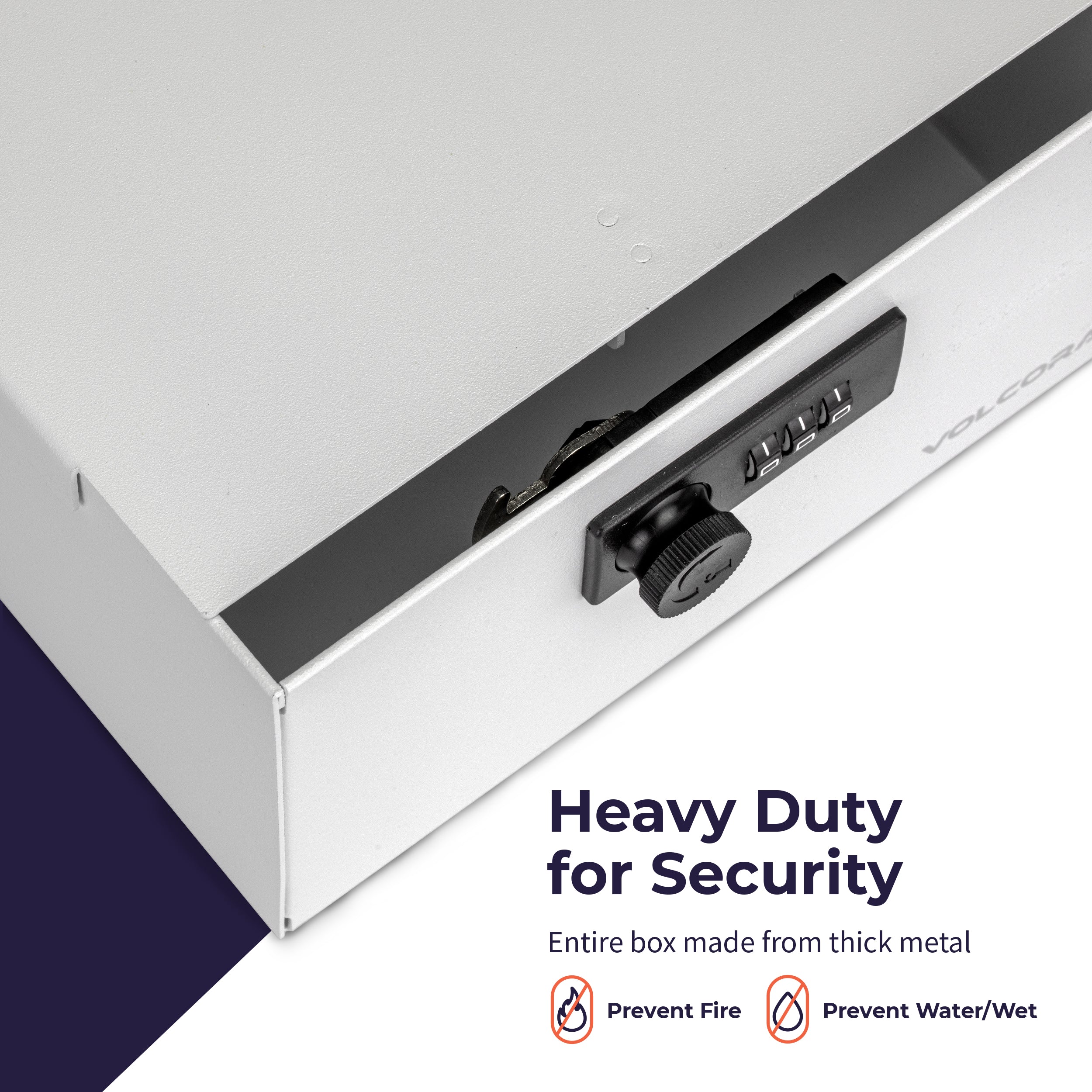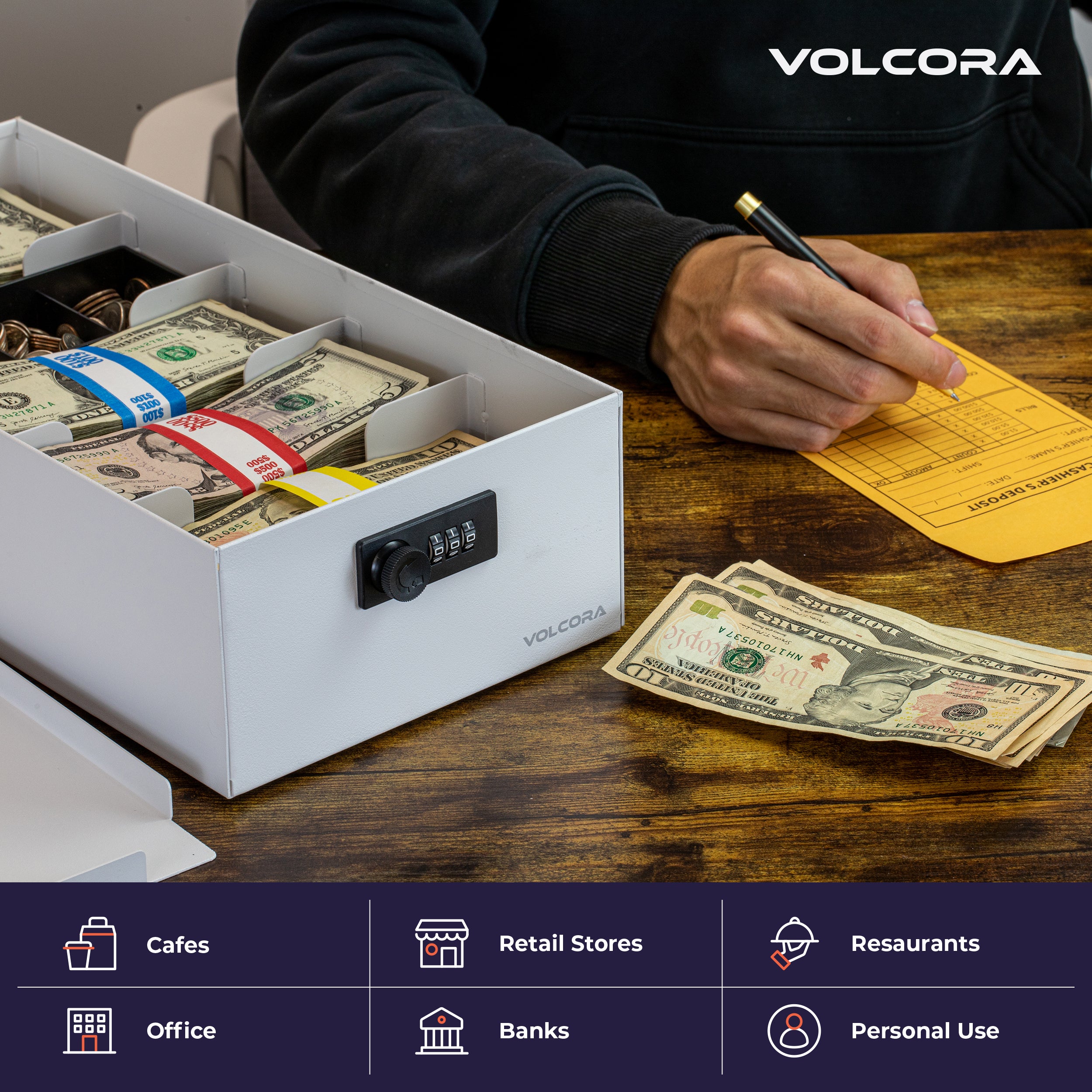 Volcora 5 Compartment Cash Lock Box with Coin Tray - White