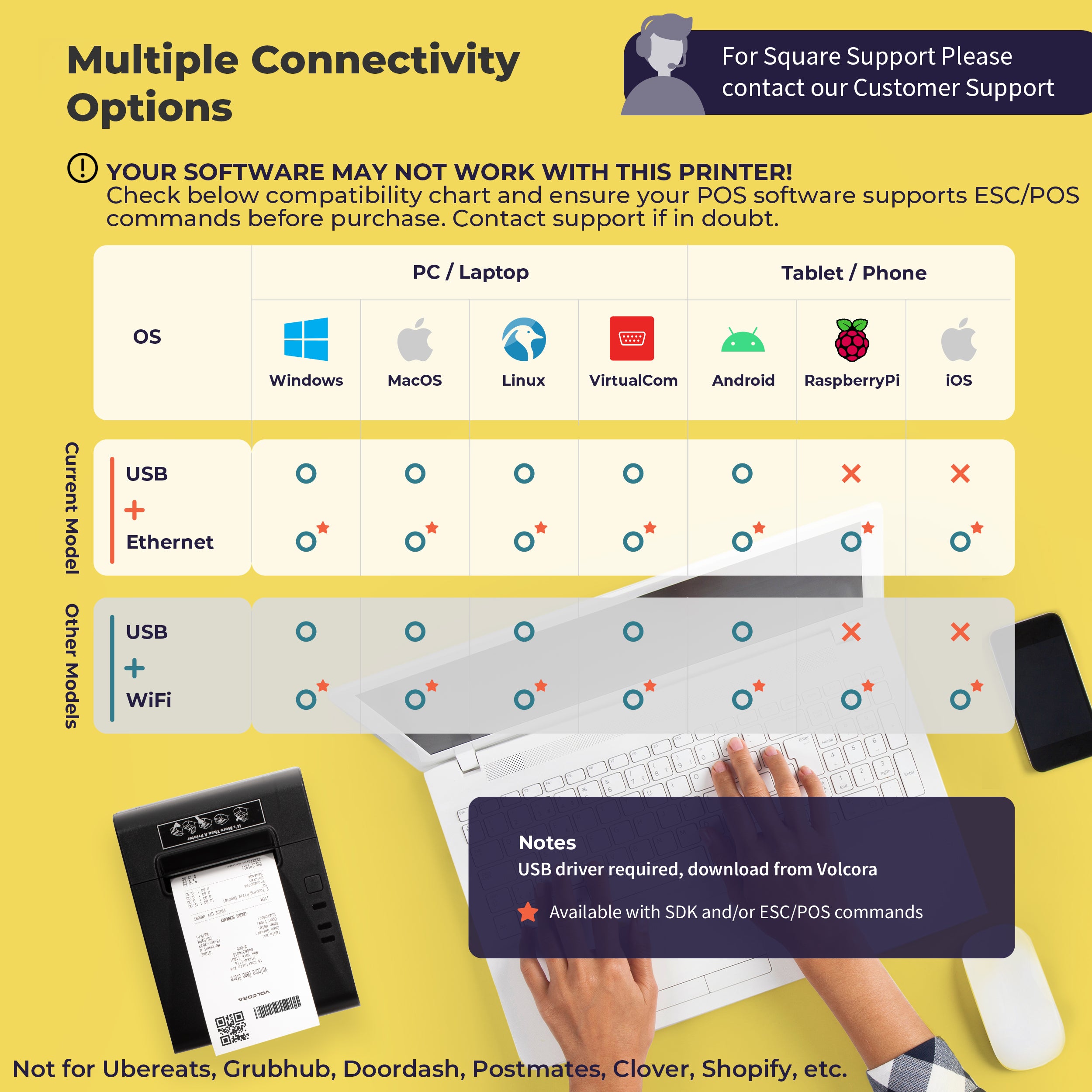 - Not compatible with Clover, Square, and Toast